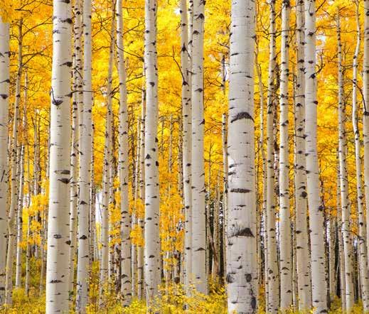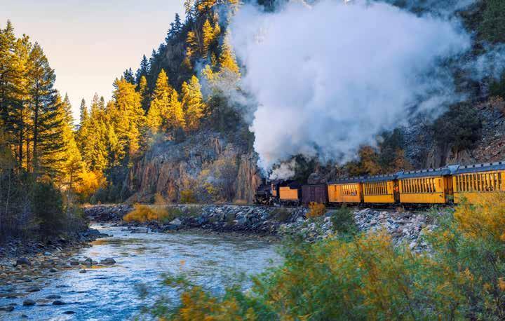 viewing the fall foliage. From mid-September to mid-November, watch the aspens turn spectacular shades at different elevations. Golden Gate Canyon State Park is worth the 45-minute drive for the bright gold aspen groves and exquisite views. Or, for a one-ofa-kind viewing experience, ride the train on the Georgetown Loop Railroad between Georgetown and Silver Plume and wind your way through the canyon.