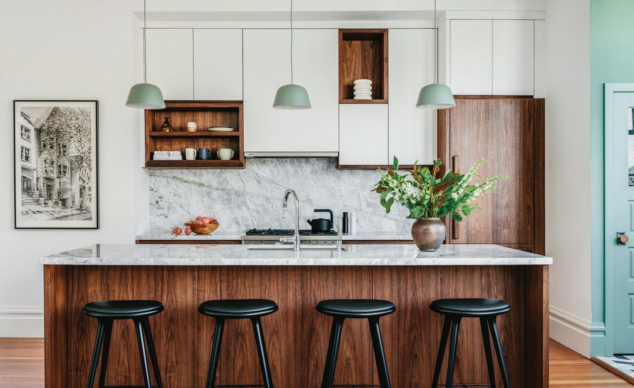 On PG.34, a worn Victorian flat proves that contrasting design sensibilities can come together beautifully in a layered, personal home. In “A Playful Retreat” (PG.50), designer Emilie Munroe embraces color, whimsy and spirited confidence in a California vacation home. Turquoise kitchen cabinets? Absolutely. Seahorse wallpaper? Why not.
