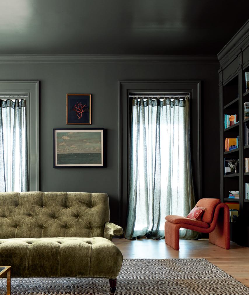 4. Trim and moldings can accentuate architectural features when treated to a coat of a contrasting color. White is classic and polished. Options other than white can help enhance the vibe you’re after, and a tone-on-tone color drench will make for an immersive environment.