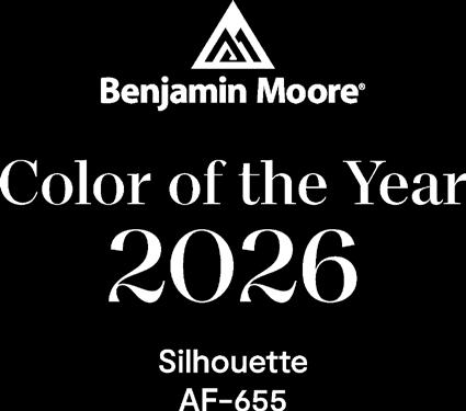 This season’s color forecast begins with Benjamin Moore’s Color of the Year for 2026, Silhouette AF-655 – a deeply refined and quietly exquisite shade paired with a palette of pale neutrals and approachable warm tones, demonstrating how the right hue has the power to elevate not just a room, but how you feel within it. That same transformative power is reflected throughout the features in this issue.