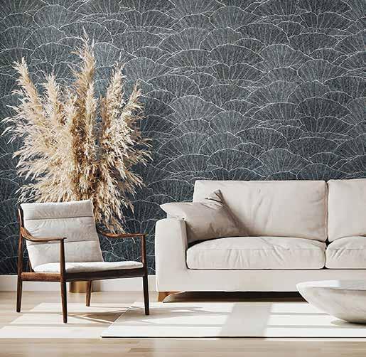 Decorating with natural fabrics, woods, and silhouettes is an enduring classic that never goes out of style. To elevate your organic look and add a dash of drama, consider adding a wallcovering that carries the theme up the walls. This example, with an undulating pattern inspired by anemones, delivers deeptoned drama without overpowering the other elements in the space.