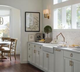 • Showcase your style with hardware that makes you smile. Just like jewelry you wear, the knobs, pulls, hooks, hangers, faucets – basically all the bits and baubles – can elevate the space and make it shine.