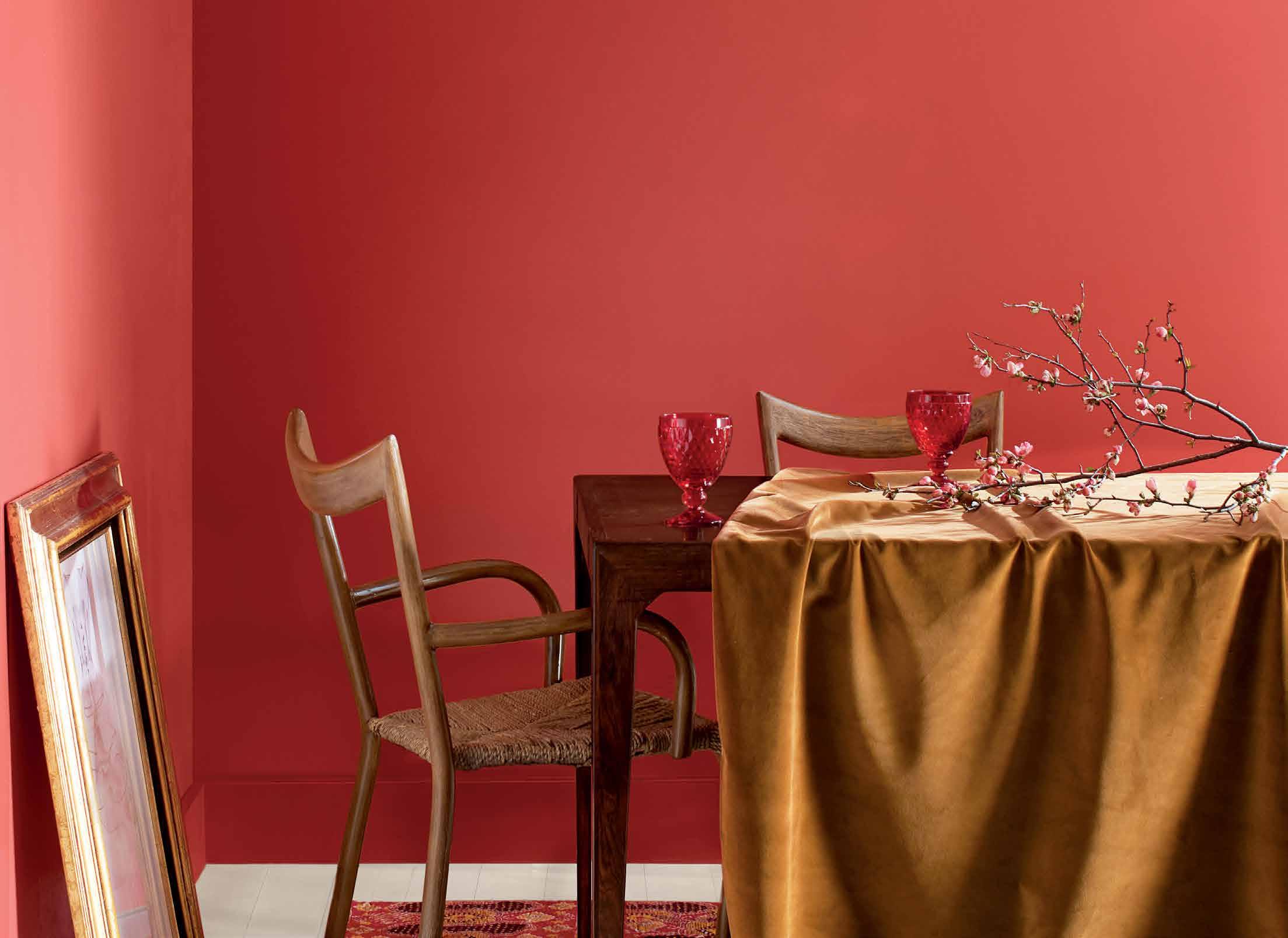 Selected for its charismatic color, Raspberry Blush’s showstopping red-orange bursts with boldness. Consider it your inspiration for a complete room makeover. Pair this trendy hue with complementary patterns, textures, and accessories. A statement rug, a playful wallpaper, geometric shapes, and varied saturations bring the look together in a harmonious way.