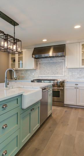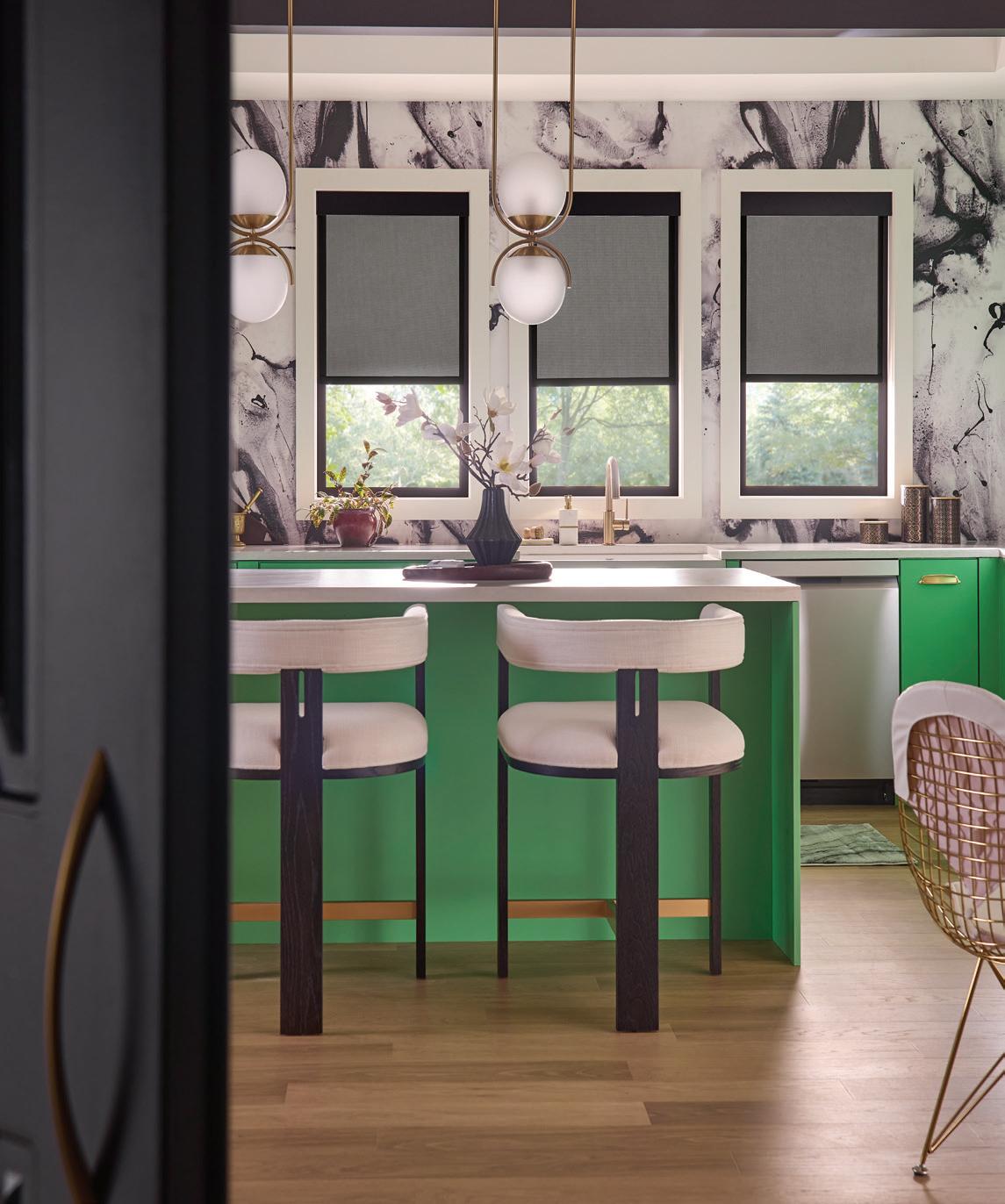 Ready to go green? Whether you’re drawn to a deep olive or a soft pistachio, there is a perfect shade to fit your style. We explore five versatile greens to inspire your next kitchen refresh on the right. A FRESH TAKE ON KITCHEN