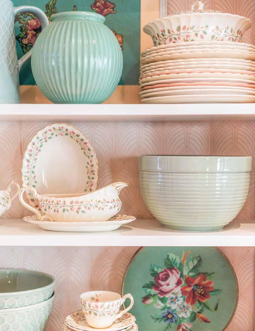 Curated cupboards: Wallpaper makes every shelf a showcase.