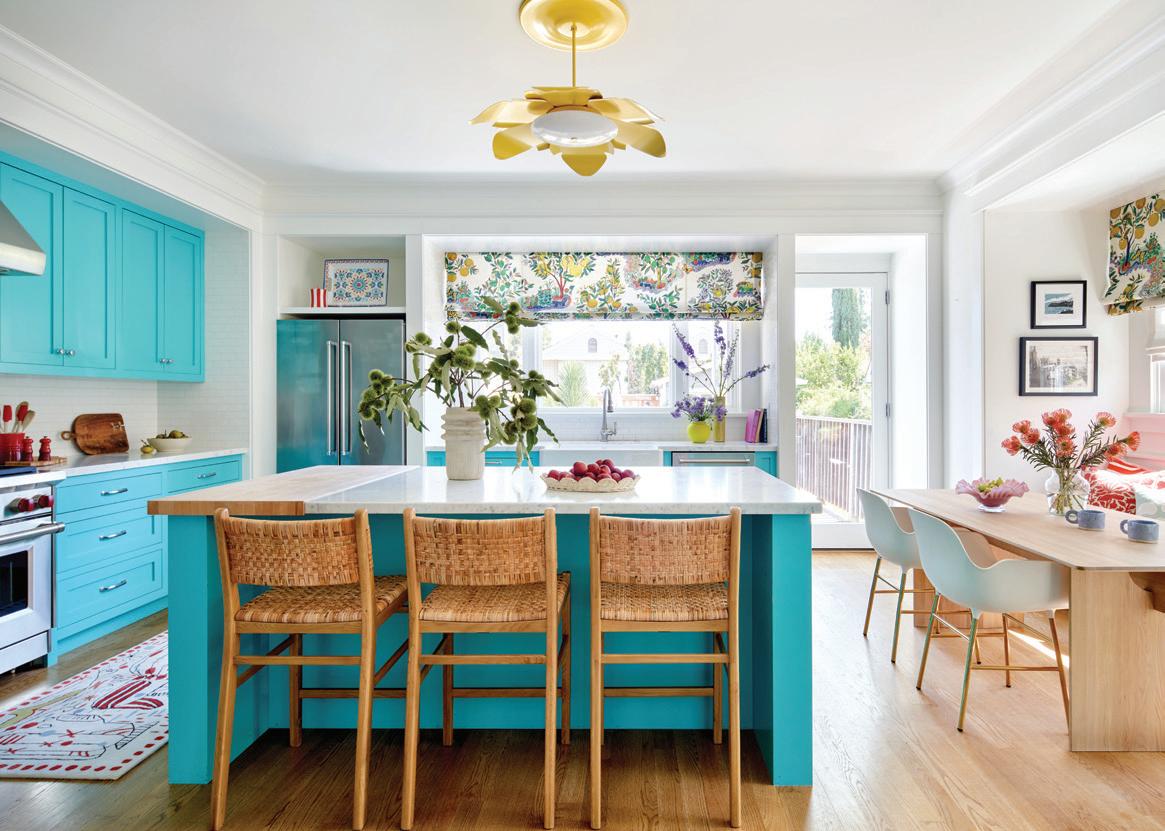 On PG.34, a worn Victorian flat proves that contrasting design sensibilities can come together beautifully in a layered, personal home. In “A Playful Retreat” (PG.50), designer Emilie Munroe embraces color, whimsy and spirited confidence in a California vacation home. Turquoise kitchen cabinets? Absolutely. Seahorse wallpaper? Why not.