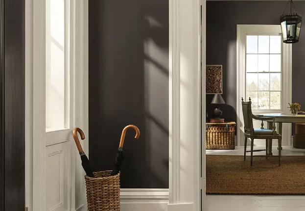A nearly black shade of green, this dramatic hue is ideal for adding depth and sophistication. It works well in historic and modern abodes alike, especially when paired with crisp white trim and natural textures.