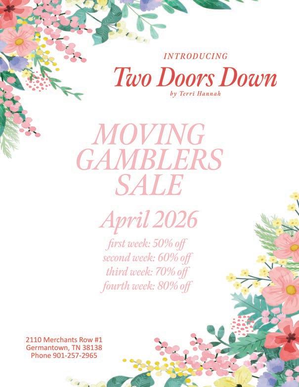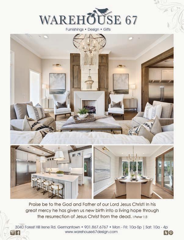 Call 901.684.4155 or subscribe at athomemms. com . Annual subscription rate: $19.95. Single copy price: $4.99. At Home Memphis & Mid South is published 12 times a year. Postmaster: Send address changes to At Home Memphis & Mid South , 7776 Farmington Blvd, #1321 Germantown TN 38183 . We make every effort to correct factual mistakes or omissions in a timely and candid manner. Information can be forwarded to Trip Monger; At Home Memphis & Mid South , 7776 Farmington Blvd, #1321 Germantown TN 38183 or to tmonger@athomemms.com.