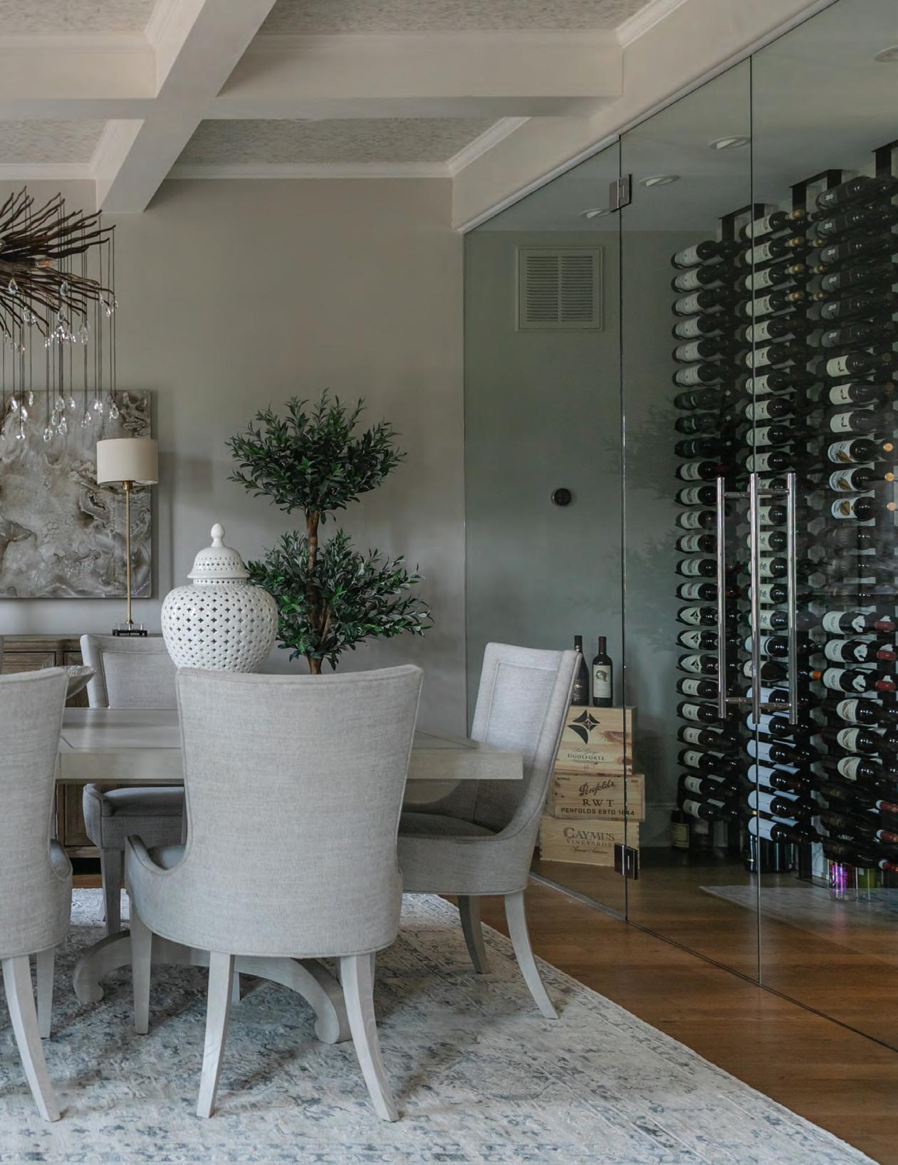 Between the dining room and kitchen is the new wine room, a glass-enclosed, temperature controlled masterpiece conceived by Loudenbeck and executed by an intrepid group of subcontractors who were willing to step outside the box. “Wine rooms just are not done very often in this area,” says Loudenbeck. “It was hard for us to source and find people to work with who understood the requirements, people who were willing to try things that they’d never done and take risks with us.”