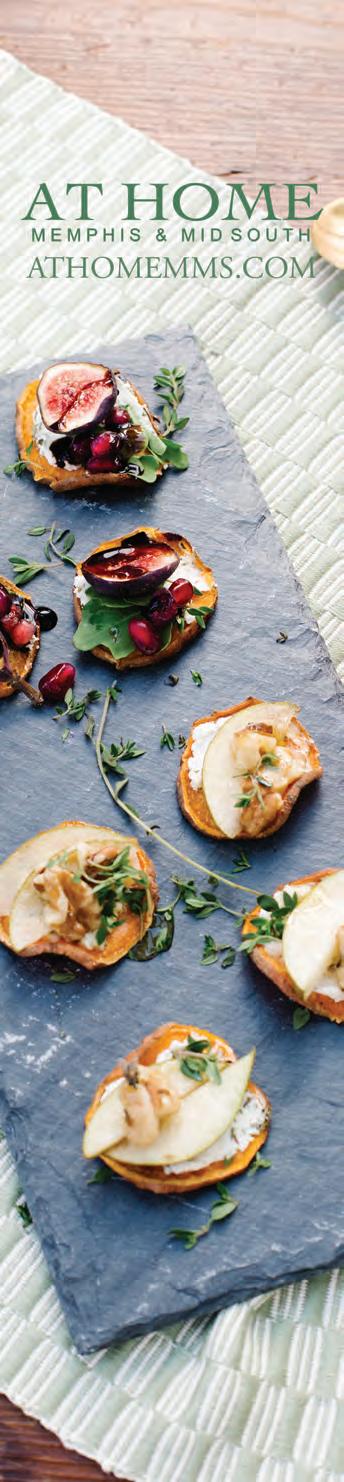 Call 901.684.4155 or subscribe at athomemms. com . Annual subscription rate: $19.95. Single copy price: $4.99. At Home Memphis & Mid South is published 12 times a year. Postmaster: Send address changes to At Home Memphis & Mid South , 7776 Farmington Blvd, #1321 Germantown TN 38183 . We make every effort to correct factual mistakes or omissions in a timely and candid manner. Information can be forwarded to Trip Monger; At Home Memphis & Mid South , 7776 Farmington Blvd, #1321 Germantown TN 38183 or to tmonger@athomemms.com.