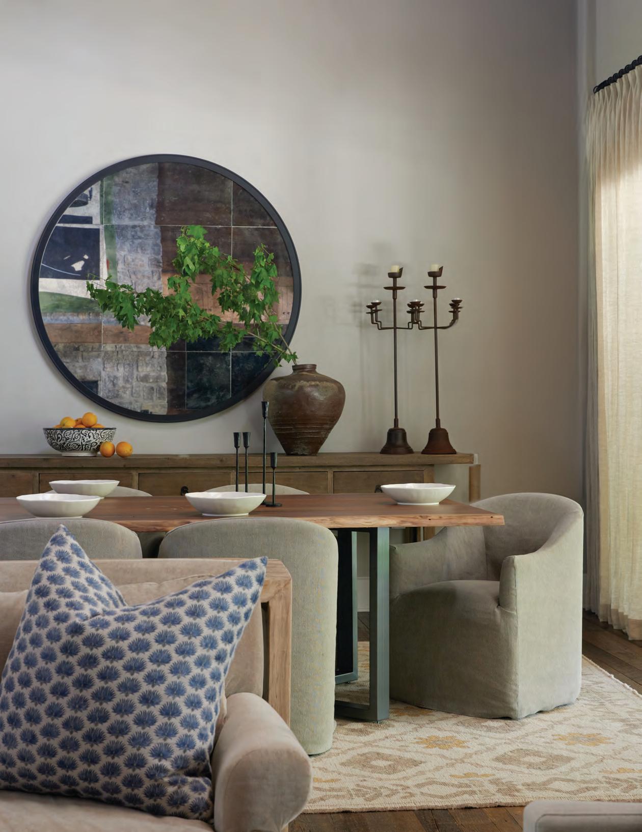 “Throughout the home, we carefully combined vintage pieces with more modern elements and artwork to create an eclectic look that could not be dated,” says Mobley. “Not only is this style virtually timeless, but it is reminiscent of the design of their mountain home, combining many different eras and aesthetics.”