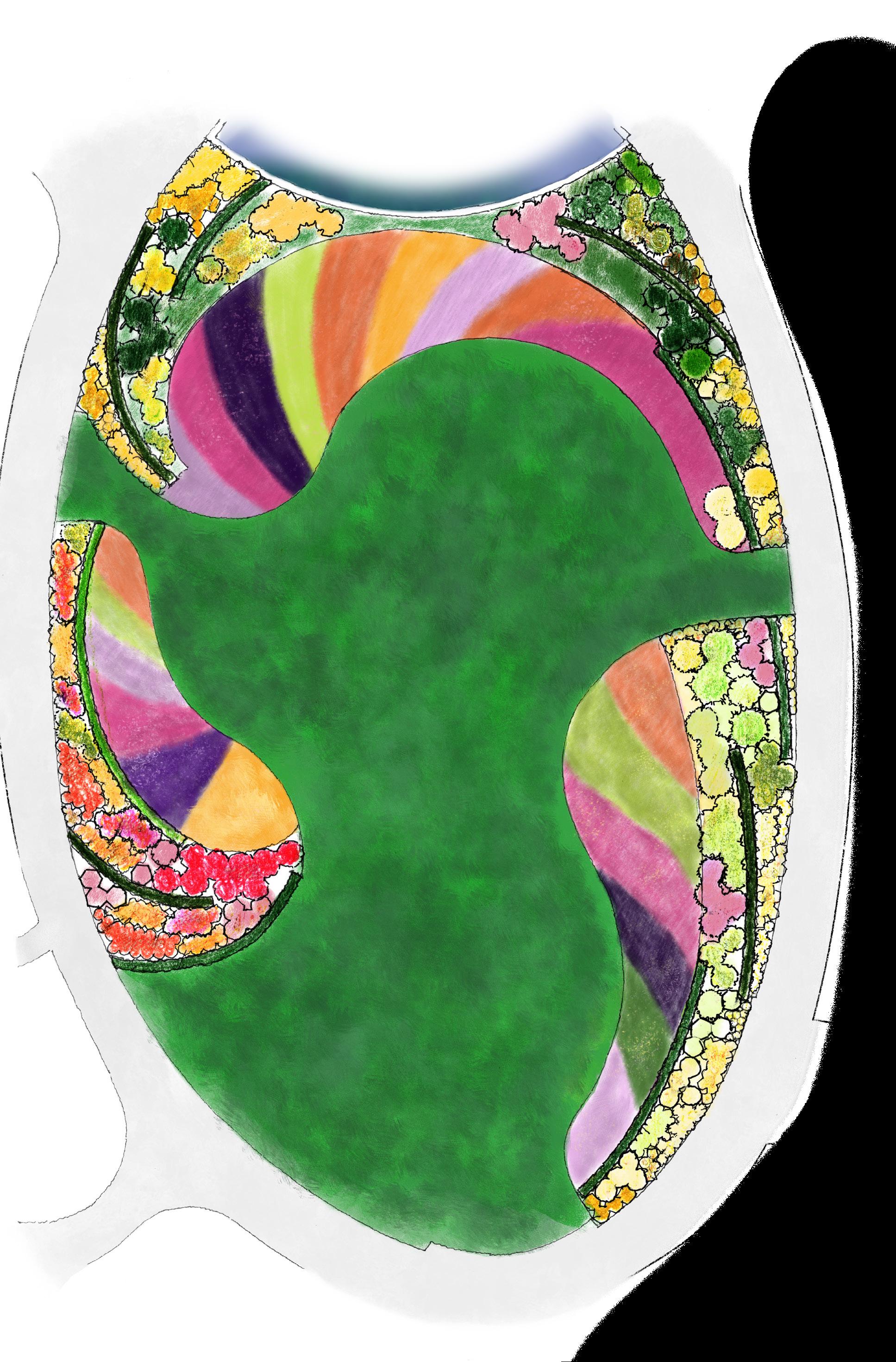 Instead, the comma-shaped beds will be maintained, new drains and irrigation will be added, and beds will be planted as mixed borders. The design, by Tres Fromme and Amanda Bennett, will feature evergreen shrubs and perennials as a backdrop for colorful summer annuals in front.