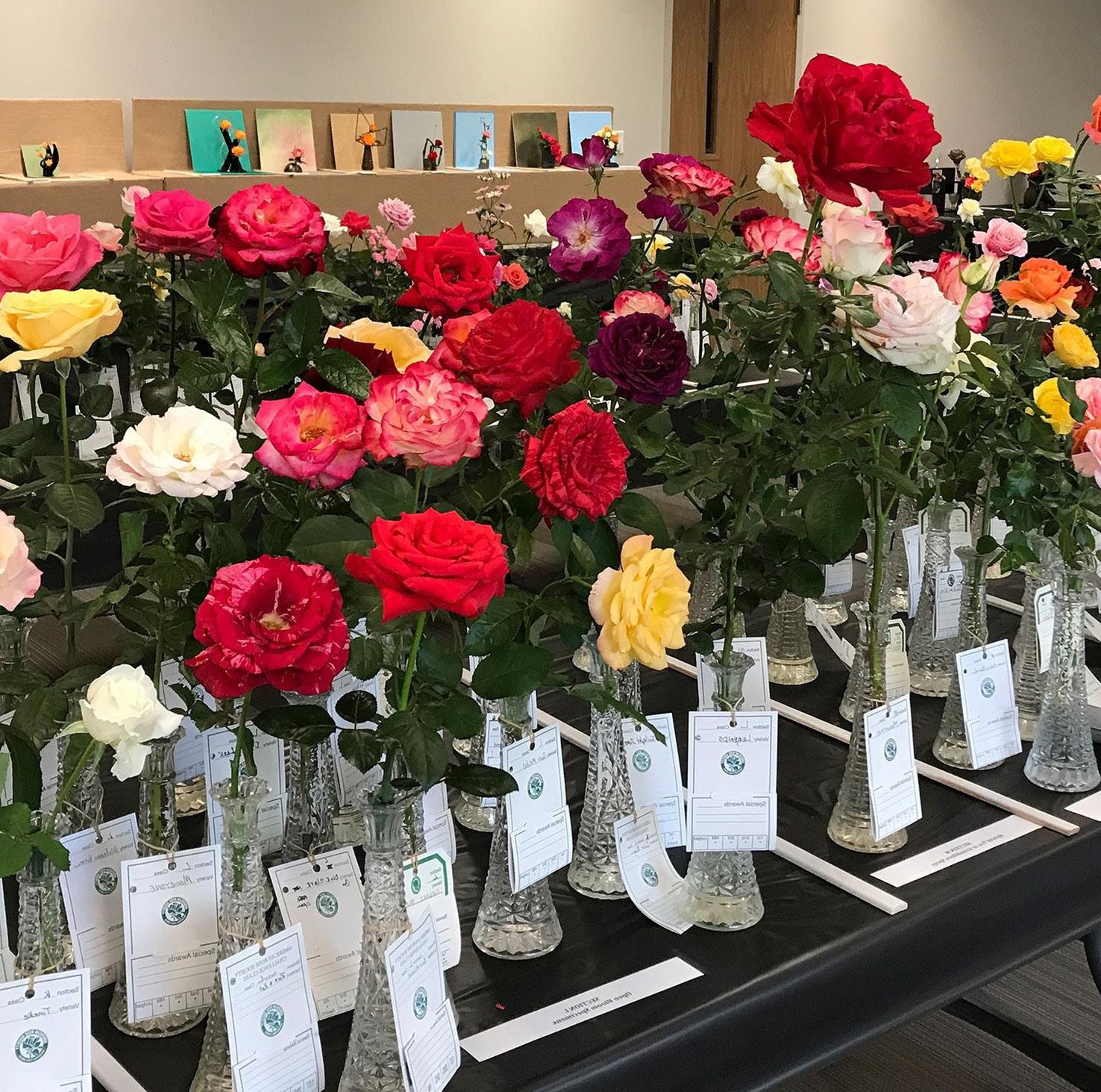 The annual cut-flower show presented by the Greater Atlanta Rose Society features roses of diverse varieties and colors.