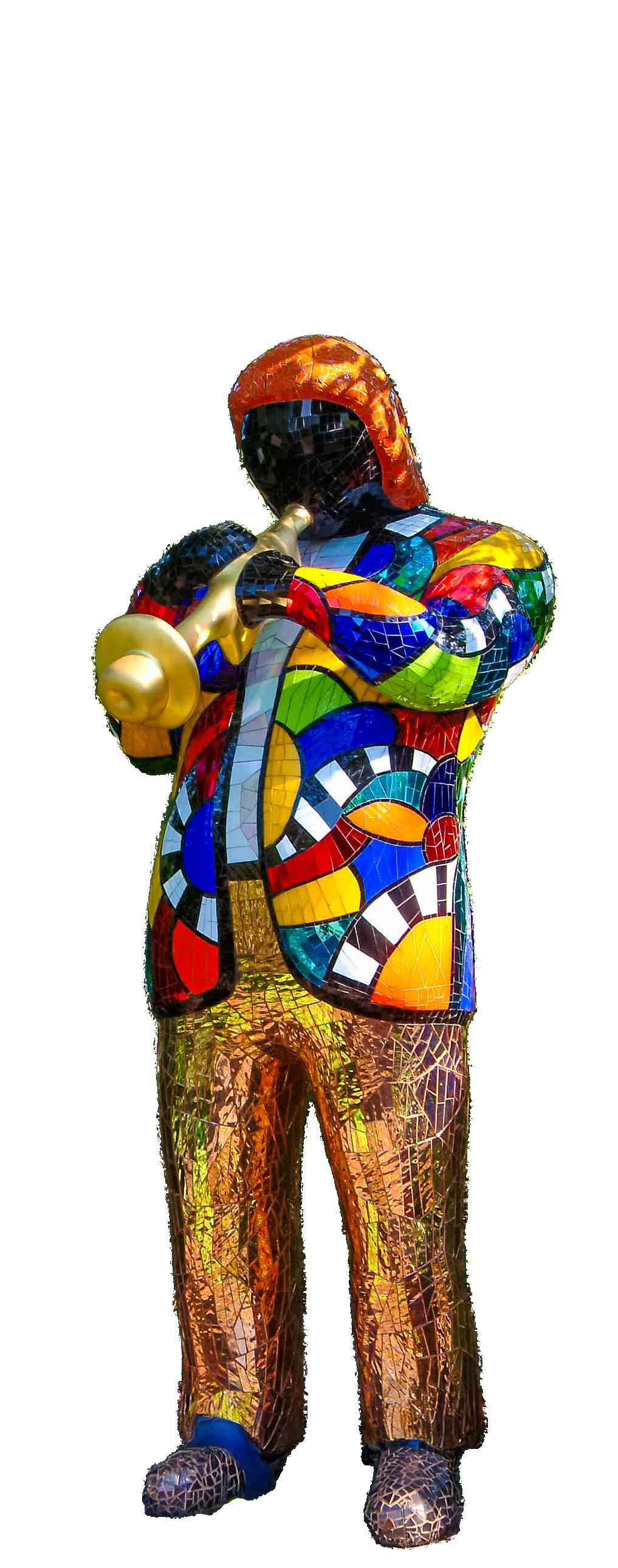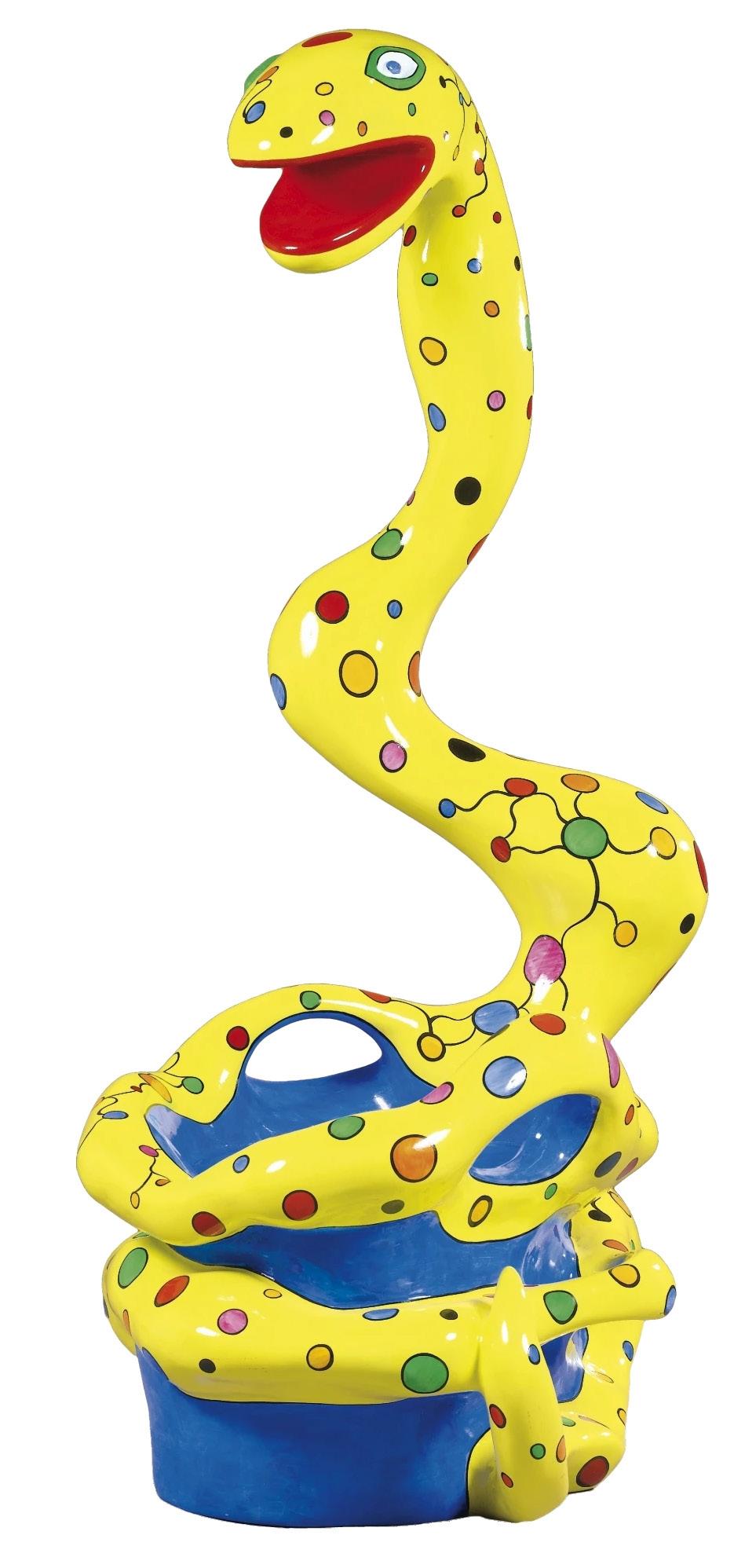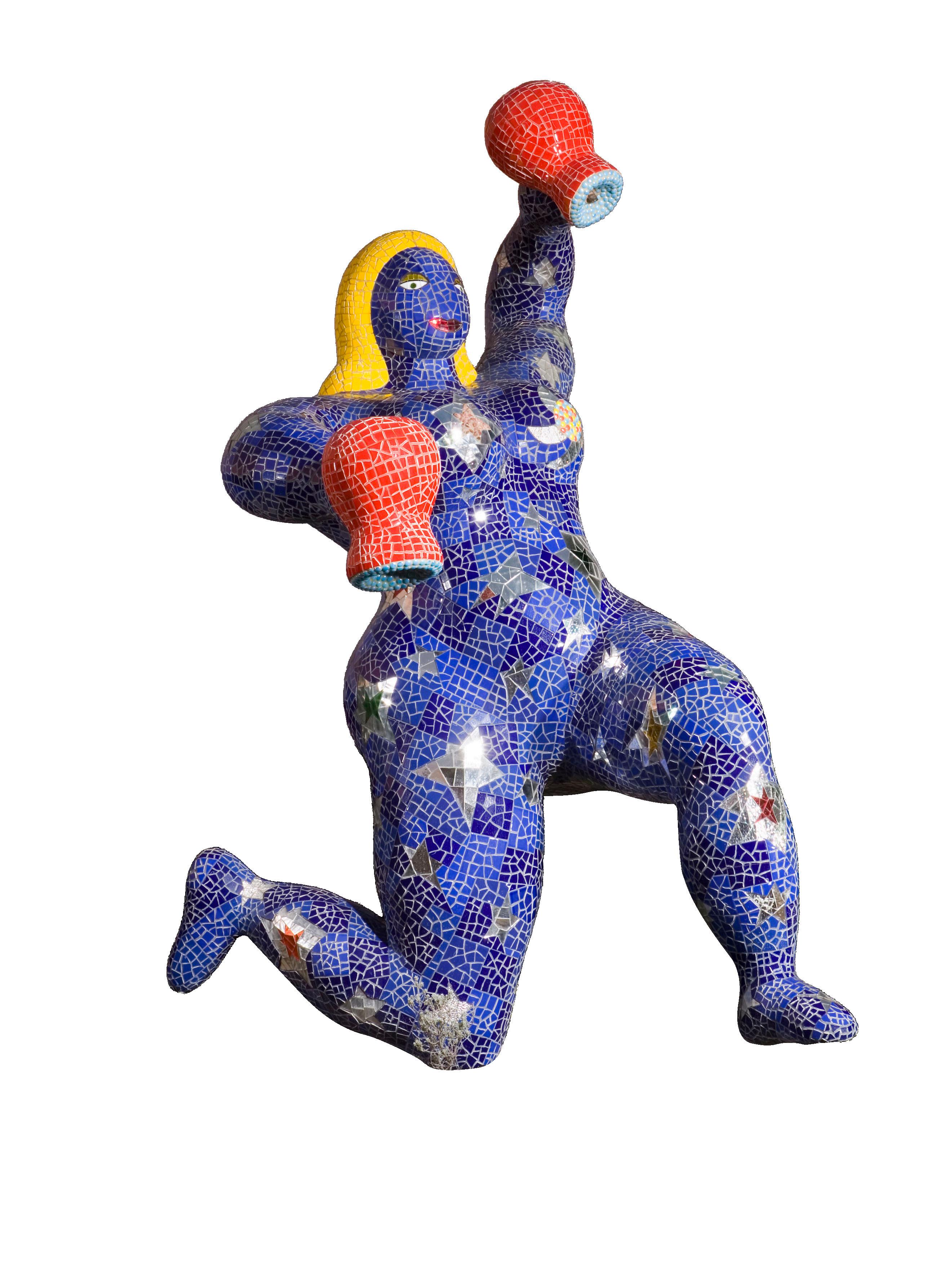 Saint Phalle, who died in 2002, worked with a range of materials, including fiberglass, resin, mosaic glass, ceramic tiles, mirror pieces, bronze, concrete and even found objects.