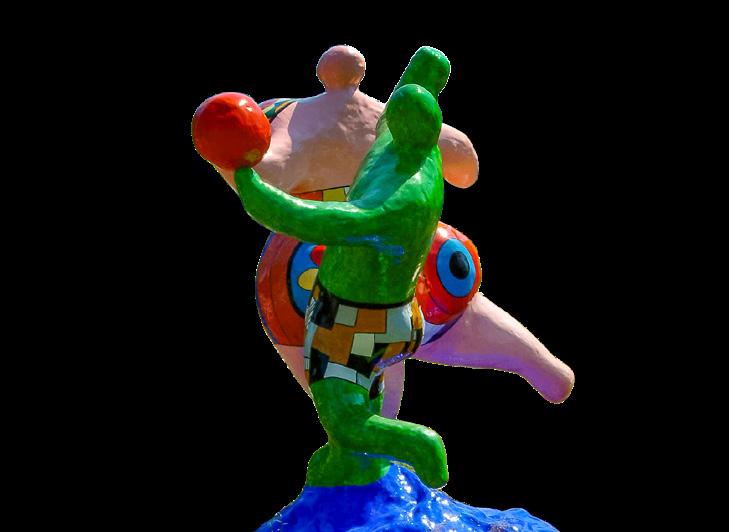 Born Catherine Marie-Agnes Fal de Saint Phalle in 1930, she came to be known as one of the few female sculptors of monumental works as well as an advocate for women’s rights, social change and environmental awareness. She became famous for her massive, colorful and playful sculptures addressing feminism, mythology, politics and personal trauma. These evolved into what she called “Nanas” – joyful, curvaceous, large-scale sculptures of women, animals and monsters.