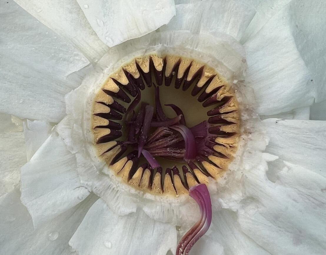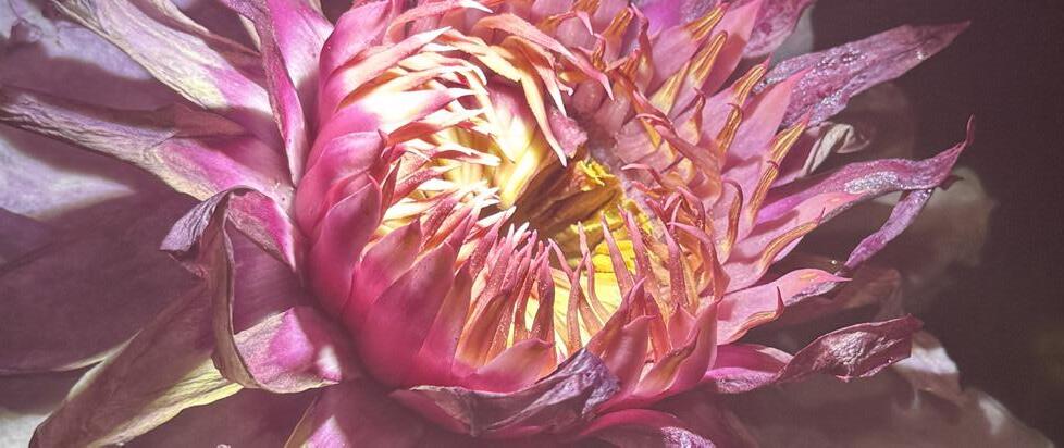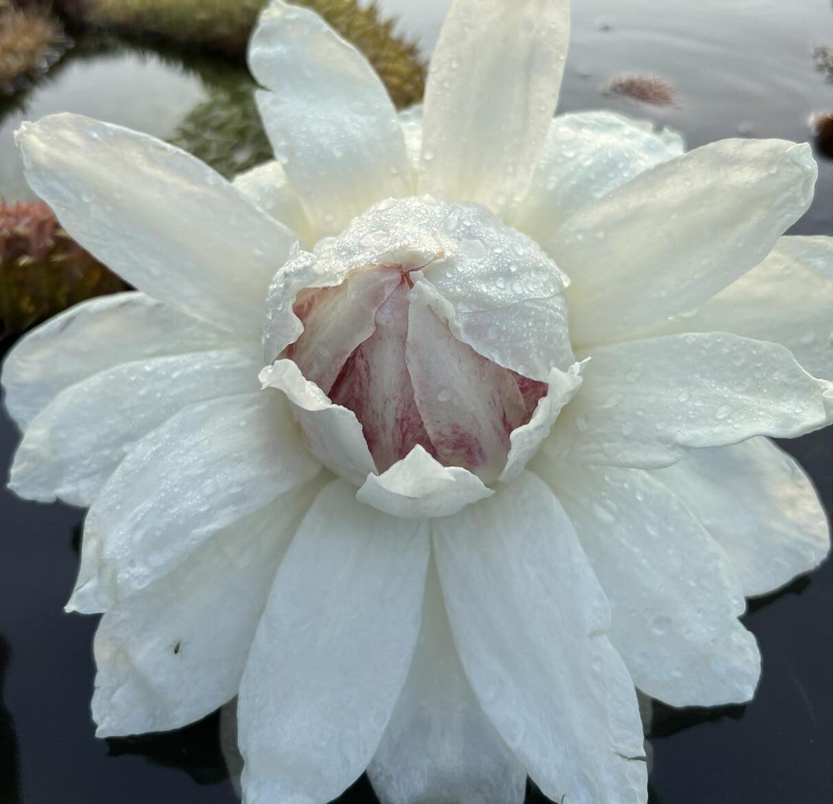 This second night is when the horticulturists step in to help out. After carefully opening the flower with surgical scissors, the tiny golden pollen grains are collected from a male, second-night flower. Then, a female first-night flower must be located to carefully distribute the pollen on its receptive pistil within 24 hours of harvesting. After pollination, it’s important to close the flower back up, keep it dry and cover the whole flower in a light mesh satchel which after several months of maturation will eventually collect the seeds, preventing them from scattering on the bottom of the pond.