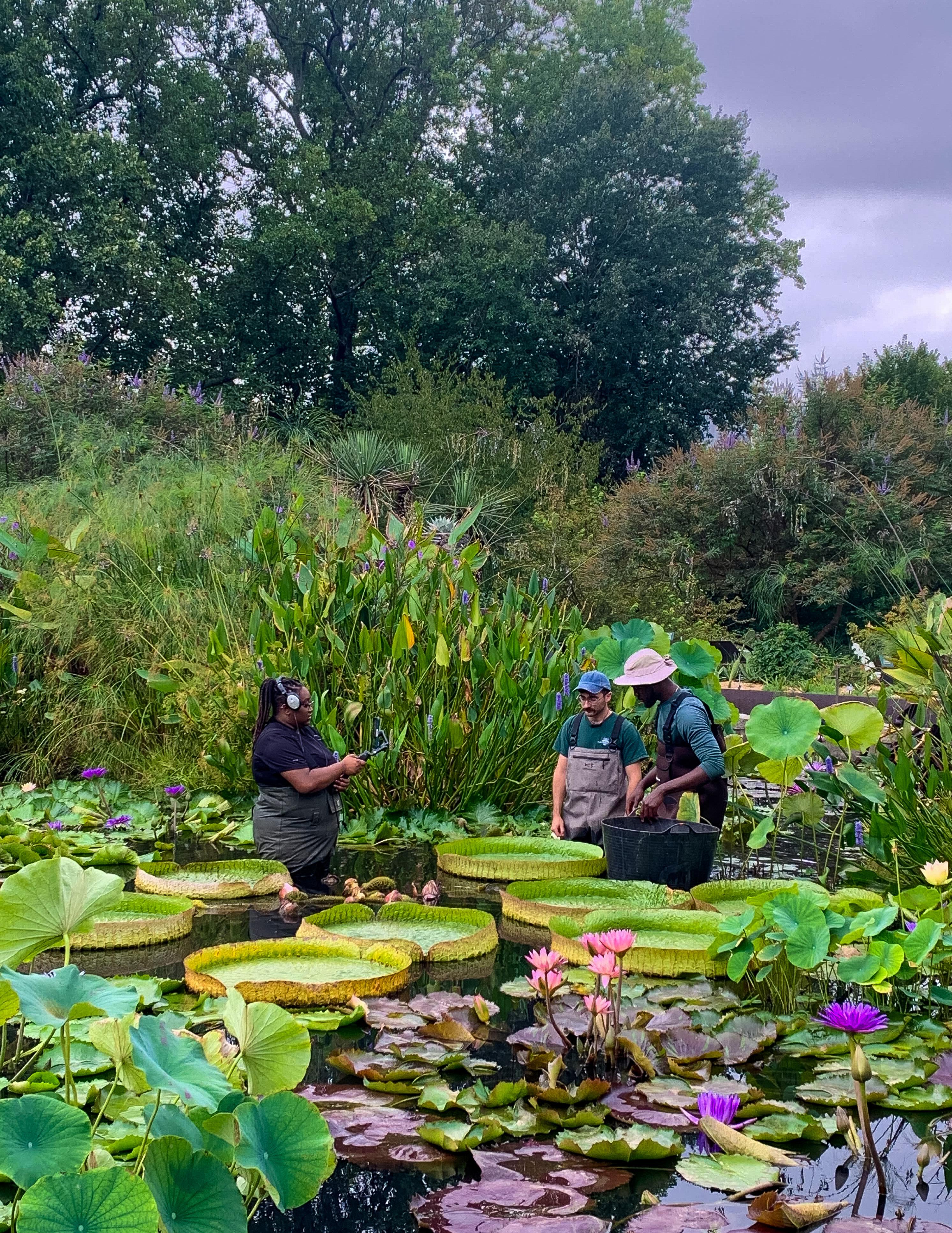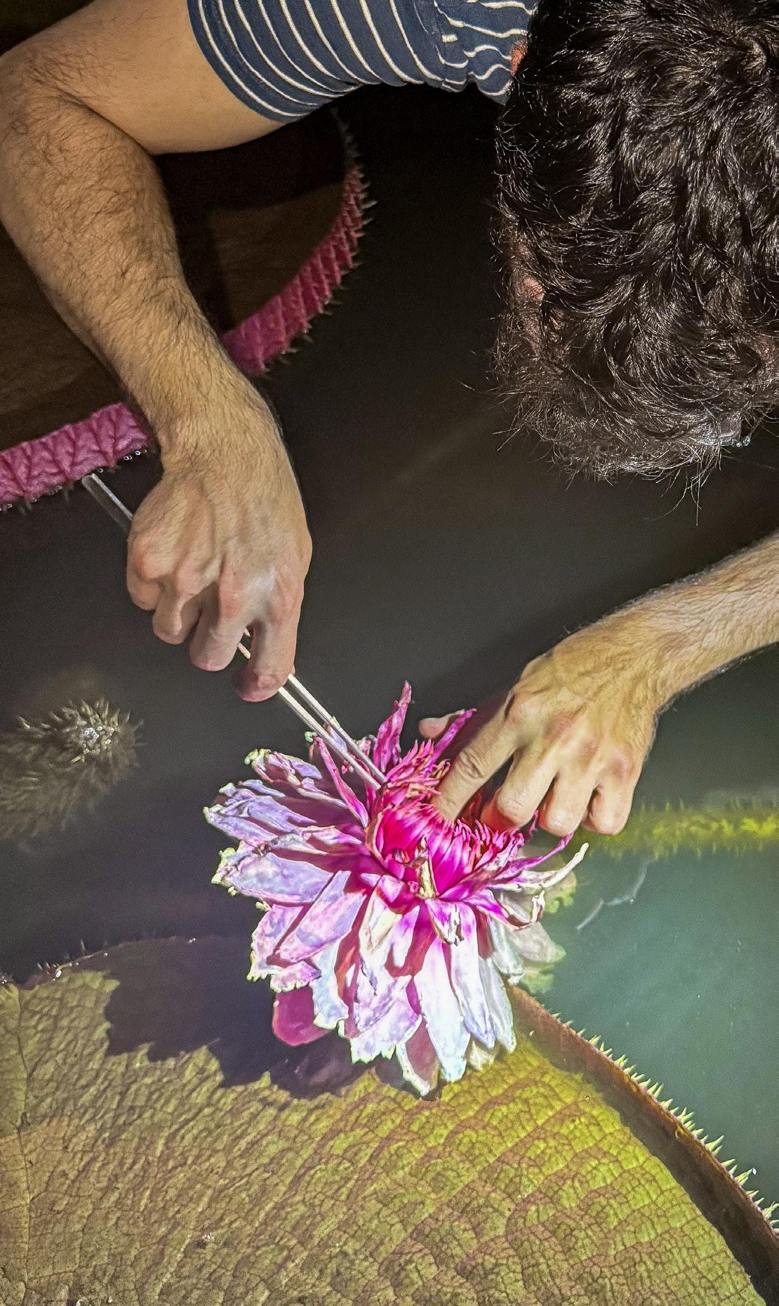 Garden horticulturists act as “nocturnal pollinators” to grow gigantic Victoria water lilies.