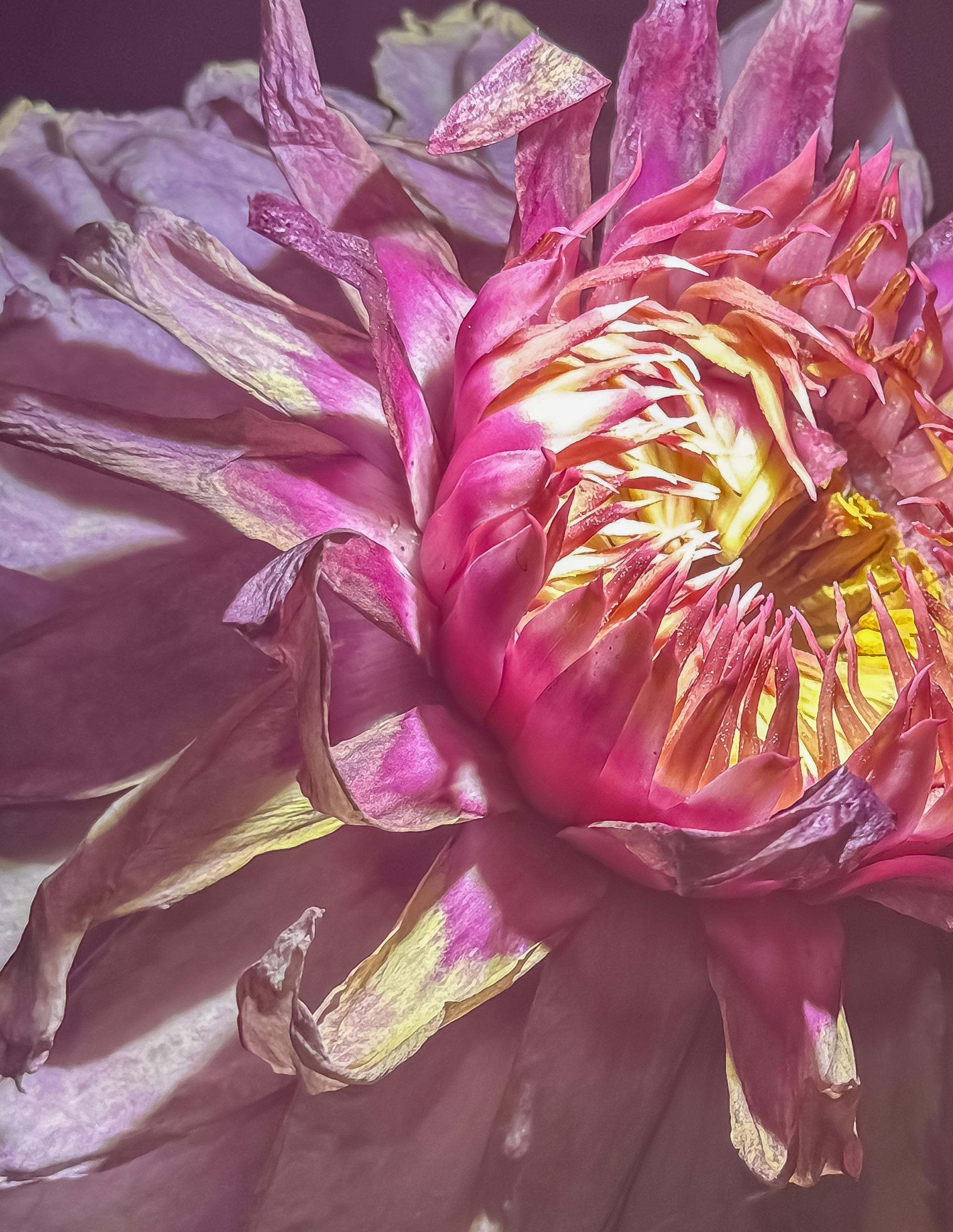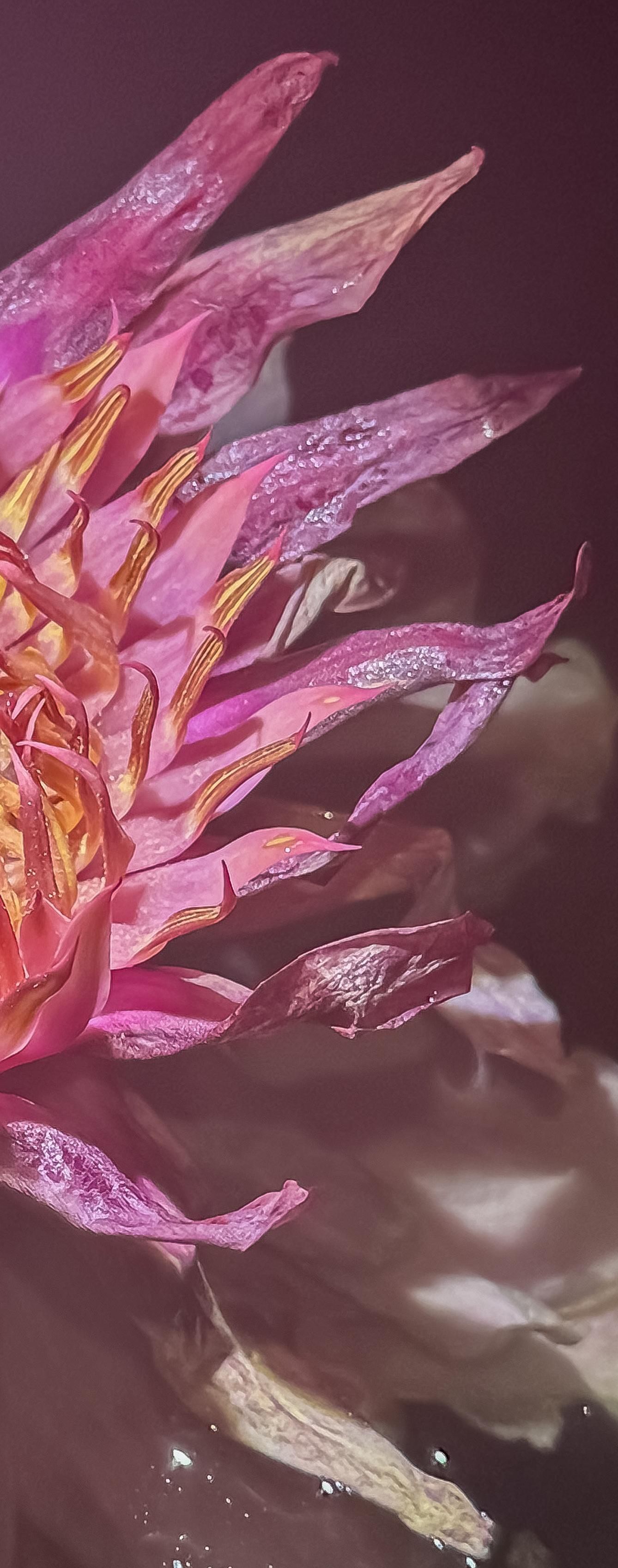 The next day, the flower closes, only to reopen on the second night presenting as male with mature pollen and a now unreceptive pistil, the female organ. A shift in flower maturity then causes the flower to flash brilliant pink.