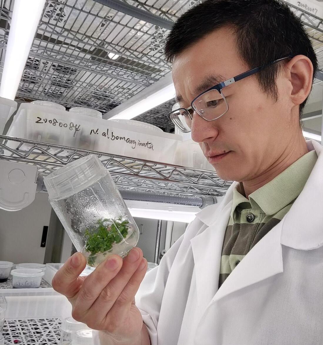 Scientist Qiansheng Li in the Garden’s Micropropagation Lab