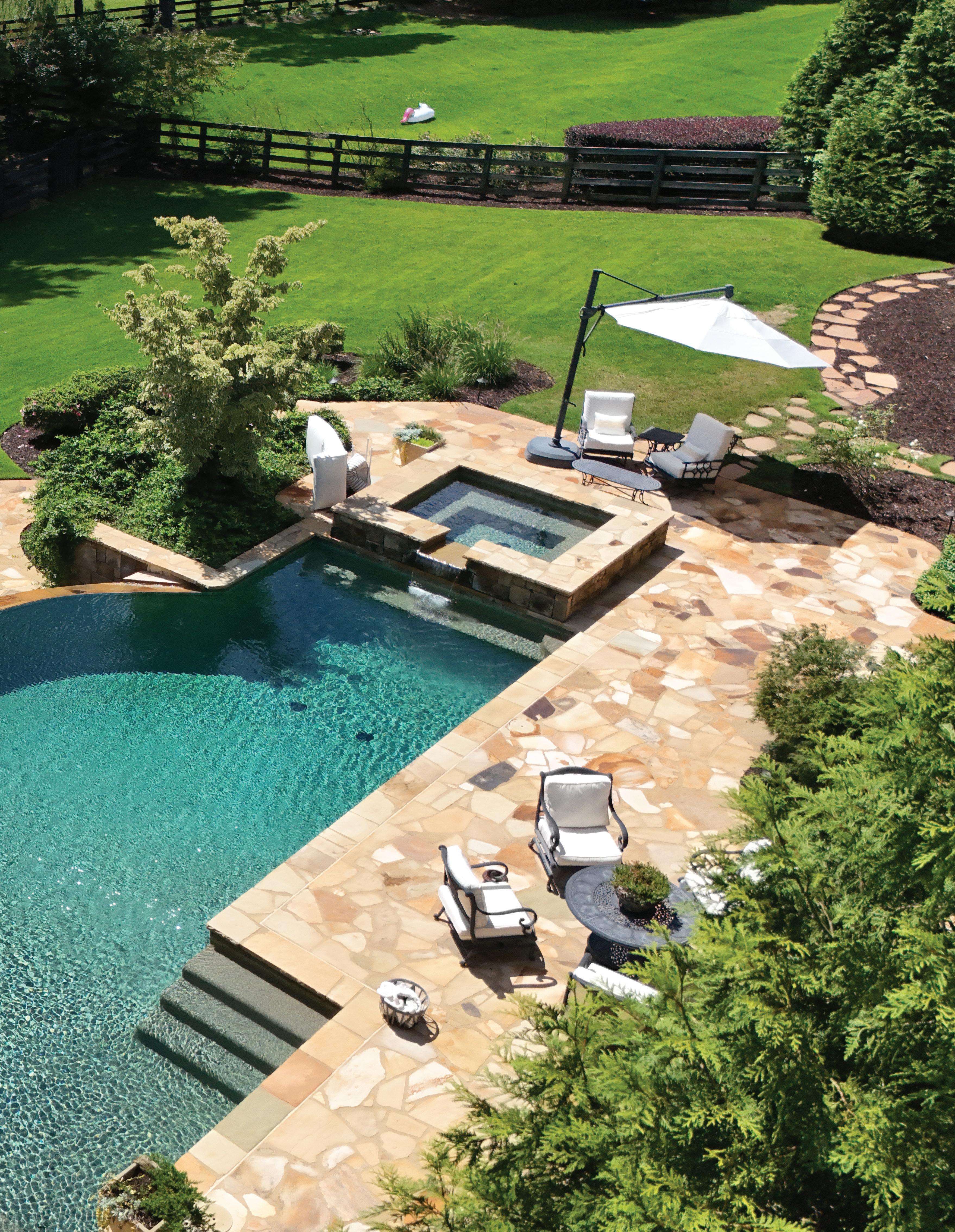 Outside, the meticulously landscaped grounds encompass an infinity-edge saltwater pool and hot tub, creating a breathtaking entertainment area. State-of-the-art amenities include a Nest system and Control4 sound system, ensuring the utmost in comfort and technology.