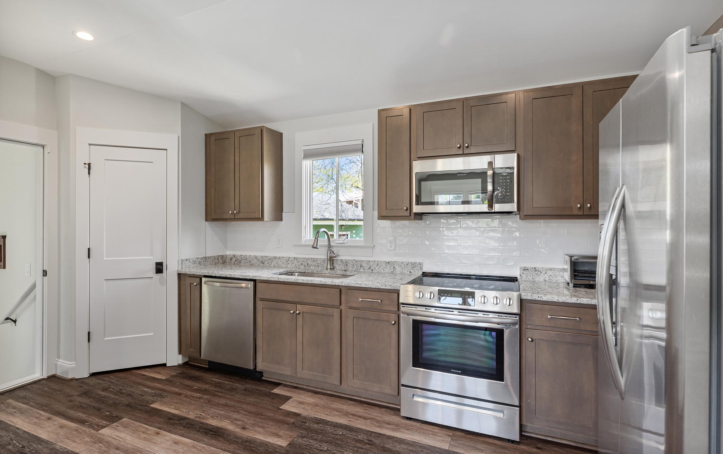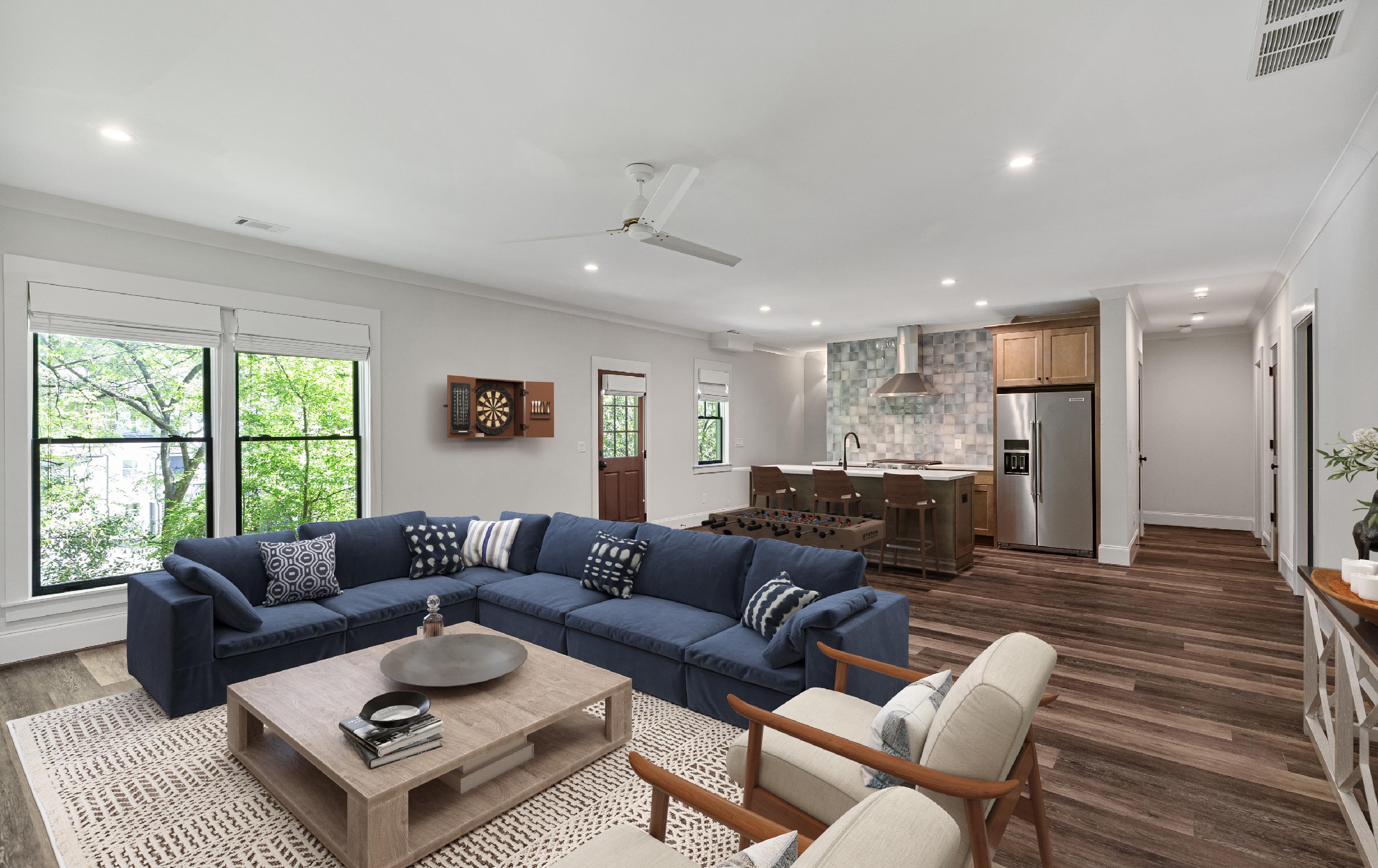 Welcome to 220 Haralson Lane, where exceptional craftsmanship and thoughtful design converge to create an artfully crafted residence combining the charm of Historic Inman Park with the convenience of modern luxury design. The beautiful front porch is the perfect spot for relaxing with coffee. Enter the front hallway and discover a two-story study or flex room. The heart of the home is the openconcept living, dining and kitchen spaces, all overlooking the private backyard. The oversized living room is ideal for a large party or a quiet night gathered around the wood-burning fireplace. The gourmet kitchen is a masterpiece with top-of-the-line appliances from Wolf and Sub-Zero, custom wood cabinetry, gorgeous quartzite countertops that extend up the wall into the backsplash and a walk-in pantry. The oversized island is the perfect spot for gathering and features additional cabinet storage, recessed outlets and a 48-inch Wolf gas cooktop with a griddle and a grill complete with a ceiling-mounted vent hood. The spacious dining room overlooks the backyard, providing a picturesque backdrop for shared meals. Step outside to find the Trex deck with a wood-burning fireplace overlooking the private backyard. A main floor guest bedroom with an en suite bathroom includes a step-less shower. The wide staircase with a skylight takes you to the upper floor. The primary bedroom has vaulted ceilings and a beautiful marble bathroom with plentiful cabinetry, a soaking tub, a stepless entry shower and a private water closet. There are two additional bedrooms upstairs and a laundry room with a sink. The basement is a treat! At its heart lies a sprawling great room with a full kitchen. Enter the theater just off the great room and create a movie room! A dedicated workout room awaits you, complete with a stackable laundry closet. You will also find a large bedroom with a full bathroom, a powder room and storage closets in the basement. Just outside the basement, you will find a large storage room under the front porch. Above the two-car garage is a studio with a full kitchen and a laundry room, perfect for renting or guests. The studio has a private entrance and a dedicated parking pad. Details abound in this residence, including lighting from Visual Comfort & Co., hardware from Rejuvenation, custom closets throughout, 10-foot ceilings, eightfoot doors, hardwood floors, window treatments, pre-wired for sound, a tankless hot water heater with a backup tank, a generator for the main floor, spray foam insulation in the attic, smart thermostats and so much more! This residence is one of six residences on Haralson Lane and shares community spaces, including a community garden and firepit area. HOA covers the landscaping for the homes as well as the community. This fantastic location is in sought-after Inman Park with several nearby playgrounds, parks, trails, MARTA, the Atlanta BeltLine, Krog Street Market (KSM) and Inman Quarter, offering some of the best shopping and dining around! Enjoy your own porch party at the Inman Park Festival!