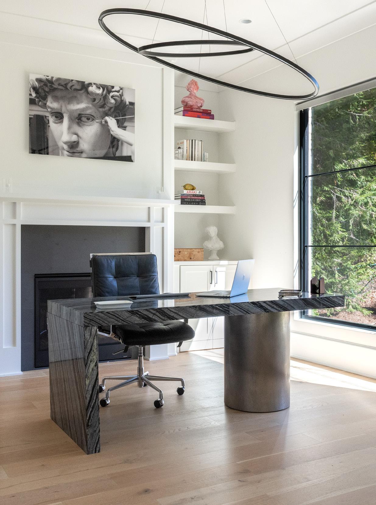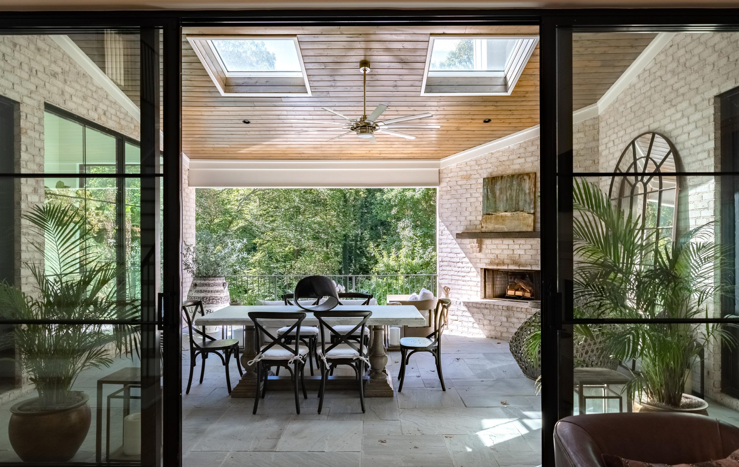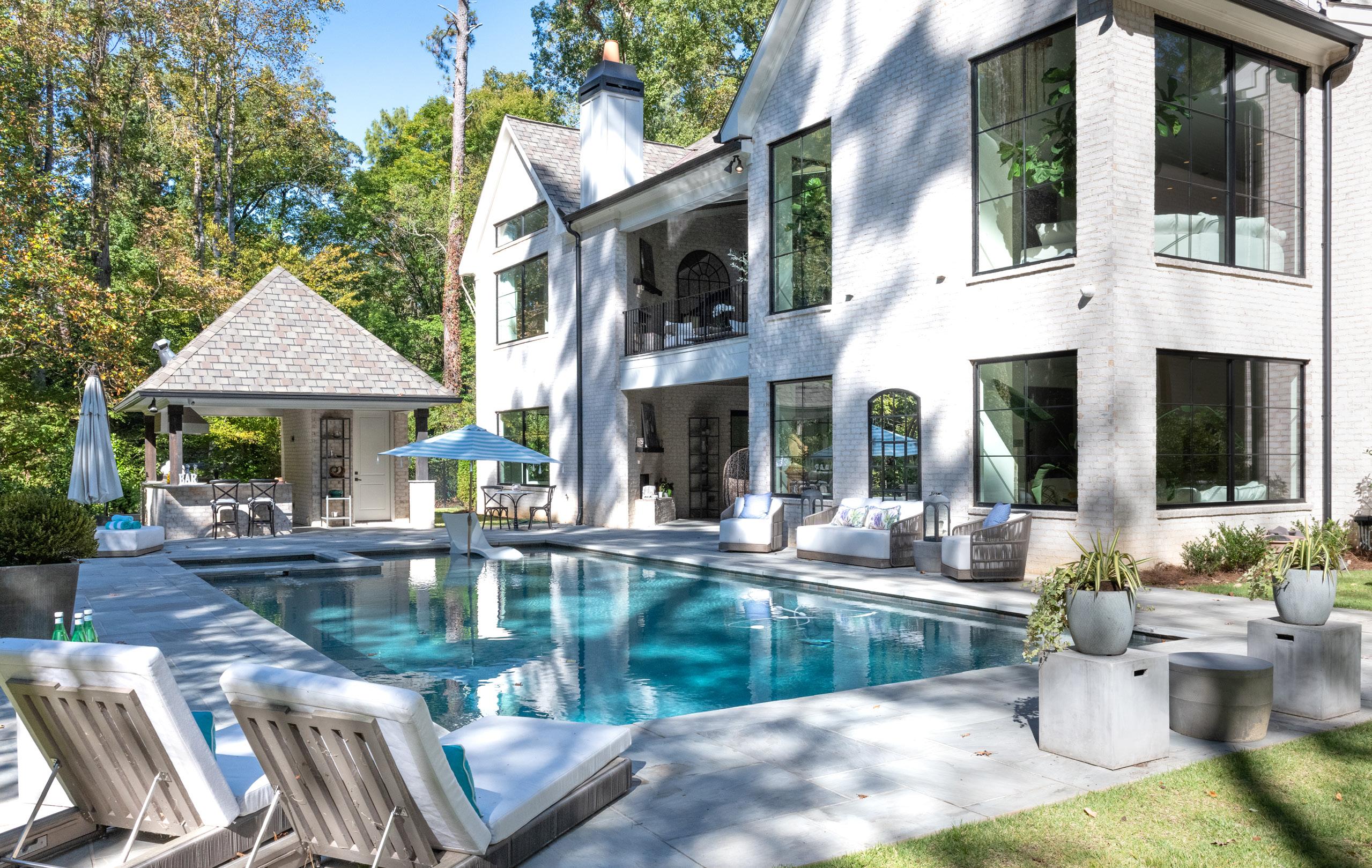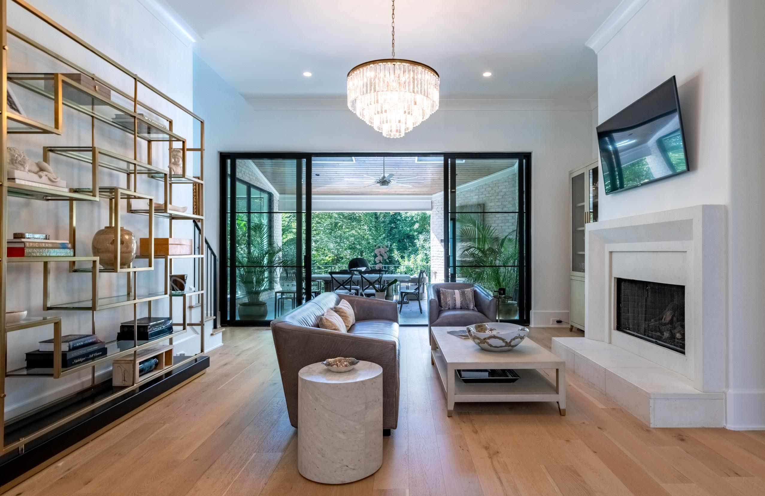 Gorgeous steel doors and windows allow soft natural light to perfectly bathe the rooms throughout the day, creating an amazing vibe around a perfect floor plan on all three levels. The main level offers a lovely entry foyer with views of the covered terrace and is flanked by a stunning dining room and a private office with a fireplace. The fireside living room offers access to the fireside terrace through sliding steel doors. The kitchen, breakfast and family room are simply show-stopping, offering another fireplace. A wide staircase leads to the upper level that hosts four spacious en suite bedrooms. The terrace level boasts an amazing bar, a sixth bedroom, a powder room, a gym and a theater space. All areas encompass another covered fireside porch, spilling out to the sparkling pool and spa.