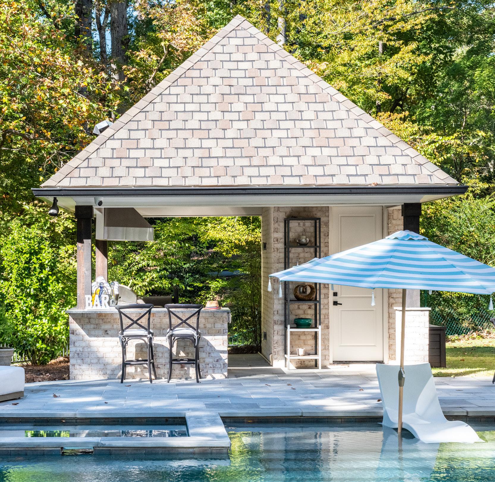 This home boasts both a main and an upper-level luxurious primary suite, each with an elegant and serene primary bathroom, an elevator, a five-car kitchen-level garage, a motor court, seven fireplaces (including two outdoor covered), a heated saltwater pool and a poolside pavilion with a full kitchen and a bathroom.