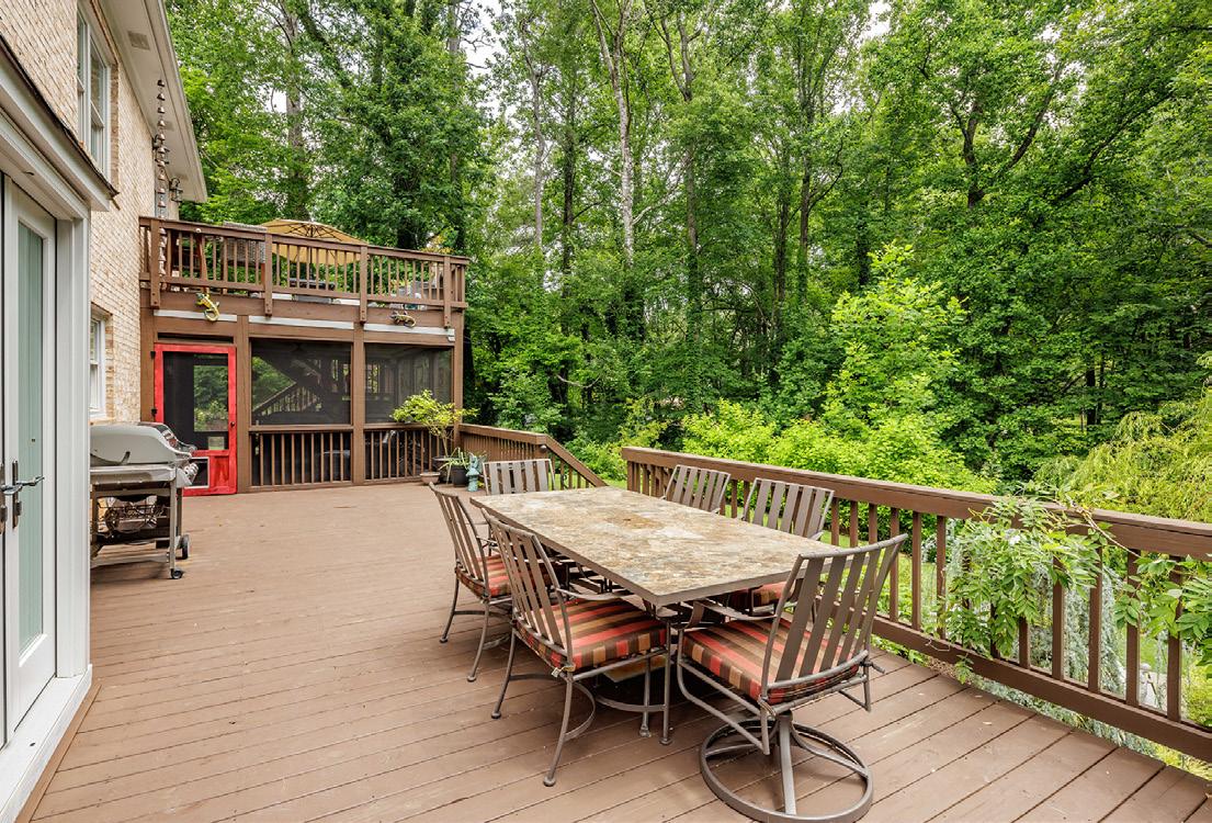 Welcome to your personal sanctuary, an all-brick residence situated on a tranquil cul-de-sac within the Tynecastle Subdivision, offering an array of custom features. Custom iron doors open to a spacious foyer adorned with marble floors and a sweeping circular staircase. The formal living room also boasts marble floors and a dual set of French doors that seamlessly blend indoor and outdoor spaces. A barn door reveals a versatile office or conversation space with a wet bar. Entertain in the separate dining room with French doors leading to an oversized deck. The renovated chef’s kitchen showcases stone countertops, a stainless steel farmhouse sink, a double oven, a gas range, a wine cooler, stainless steel appliances and a large breakfast room. Relax in the fireside family room or the screened porch. A main-level laundry room and a formal powder room with a custom vanity add convenience. The upper level has hardwood floors and features the owner’s suite with a morning bar, dual closets, a loft, a sitting area and a spa-inspired bathroom with a double vanity, a soaking tub and a steam shower. A private deck overlooks the beautiful backyard. Three additional bedrooms share an updated hall bathroom. The finished terrace level offers a recreation room, an in-law suite, a full bathroom and a second screened porch with travertine flooring. A private saltwater pool with a sun shelf and a spa awaits outside. Additional details include a two-car side entry garage, all-new Pella windows and doors and a new driveway. Enjoy the convenience of a quaint subdivision with no HOA and proximity to GA-400 and I-285, upscale shopping, schools, restaurants, the Perimeter Business District and local country clubs. Sidewalk access leads to Publix, parks, Downtown Dunwoody and more.