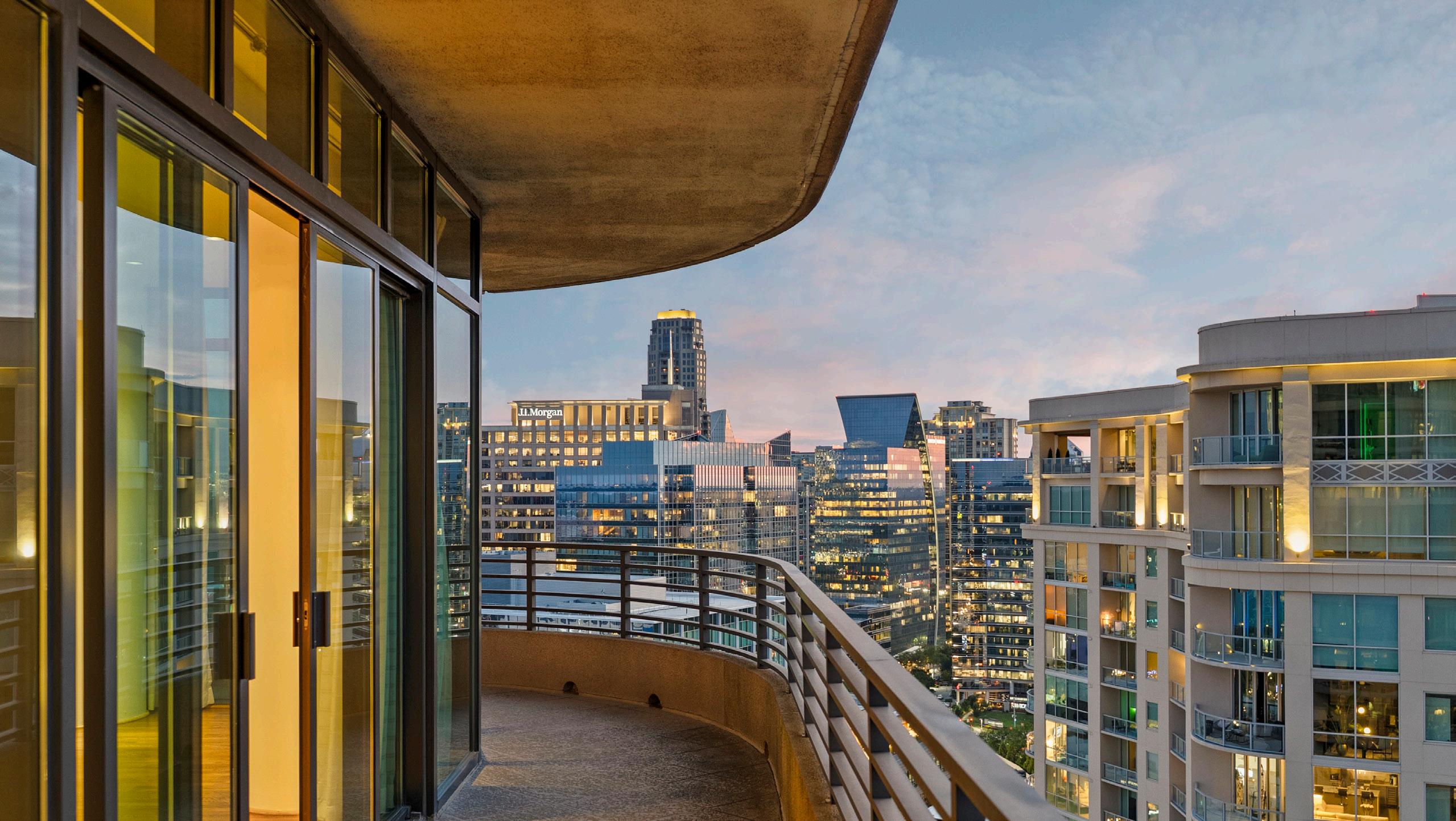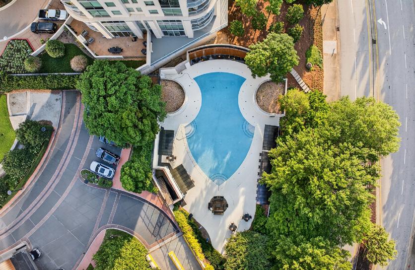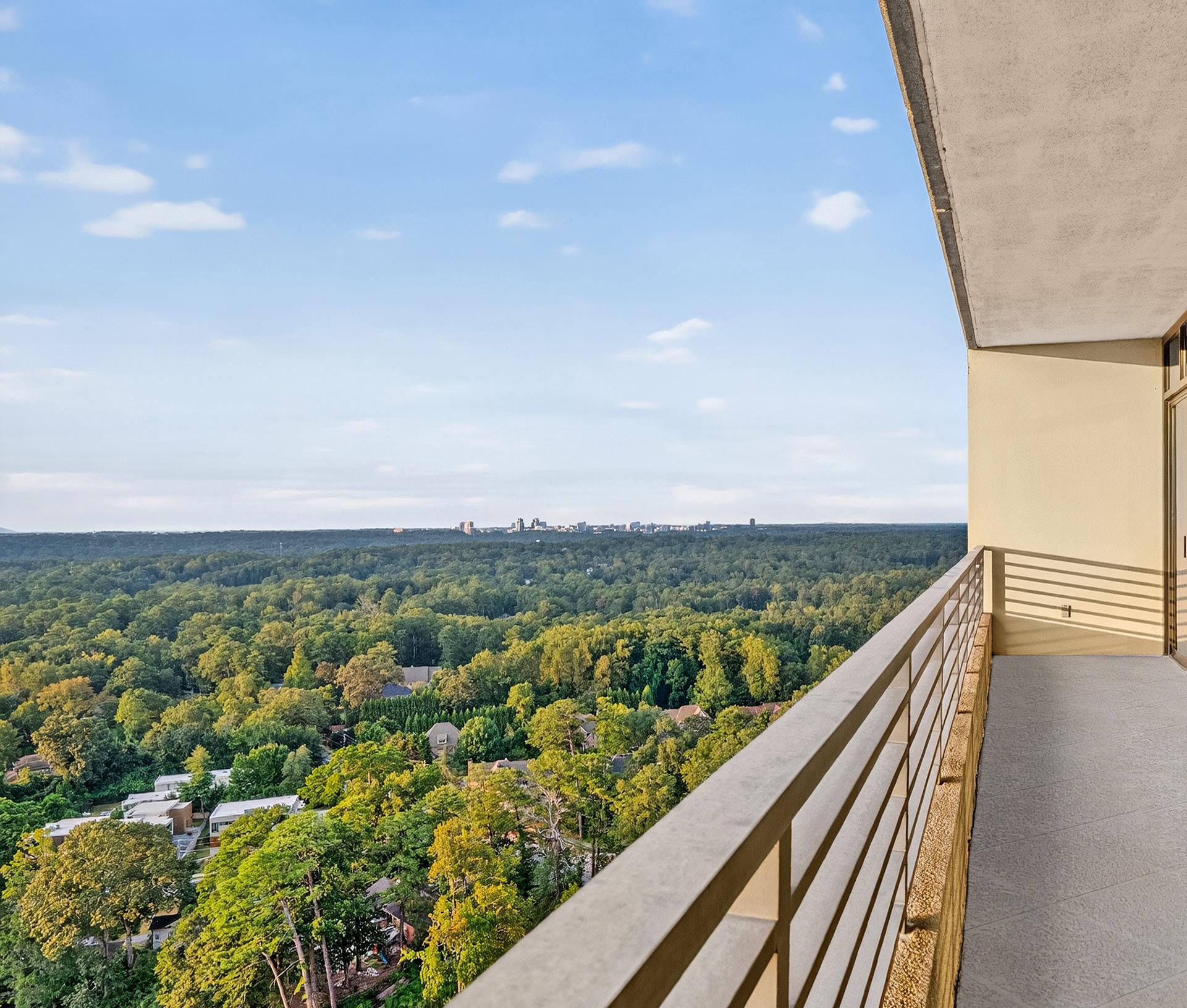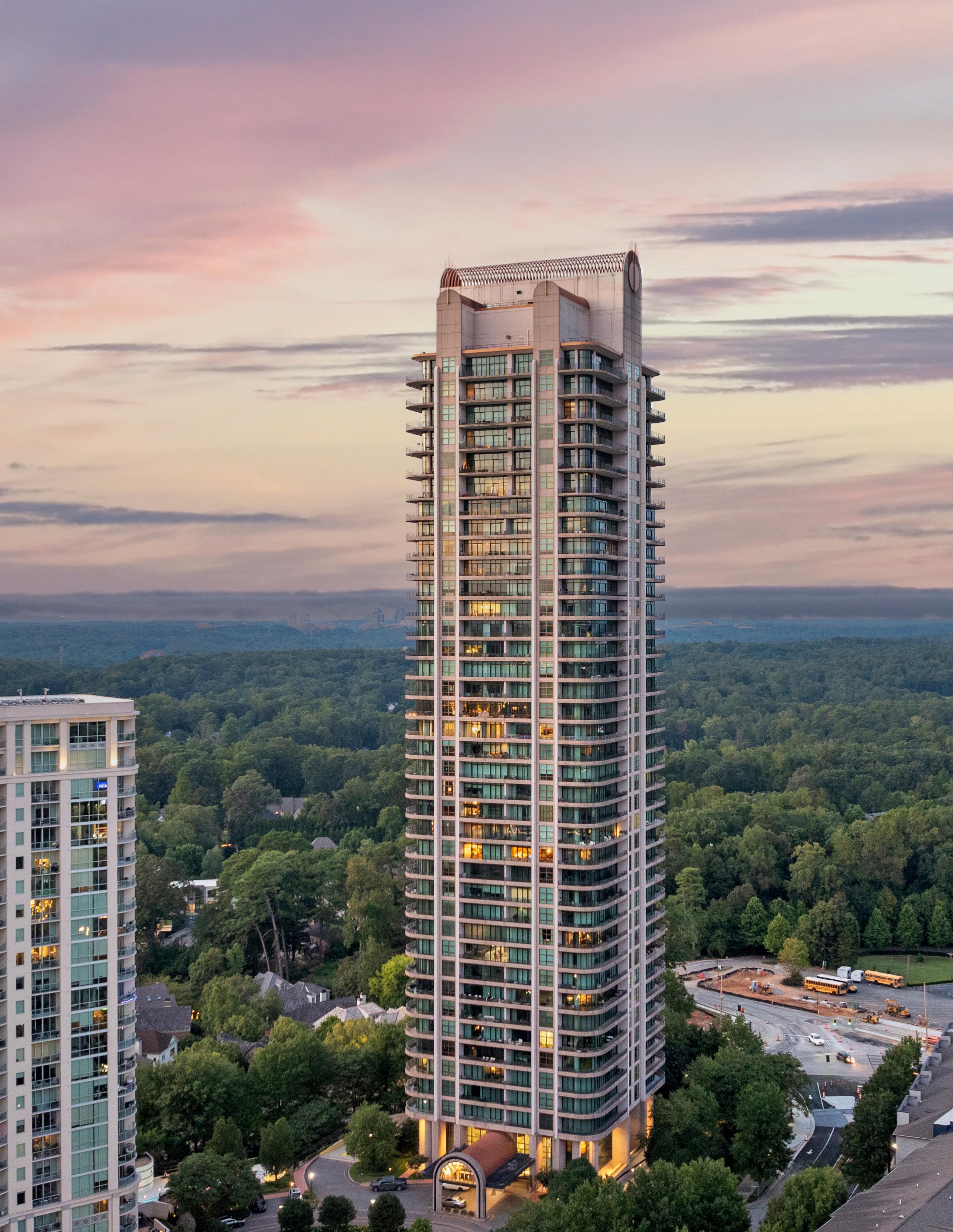 Spanning a quarter of the building, this coveted corner residence features two expansive terraces — including a wraparound balcony with four separate egresses — blending seamless indoor-outdoor living. Floor-toceiling windows frame the most iconic vistas in the city: Downtown's glittering skyline, Buckhead's lush tree canopy, Stone Mountain to the east and on the clearest days, the far ridgelines of North Georgia and North Carolina.