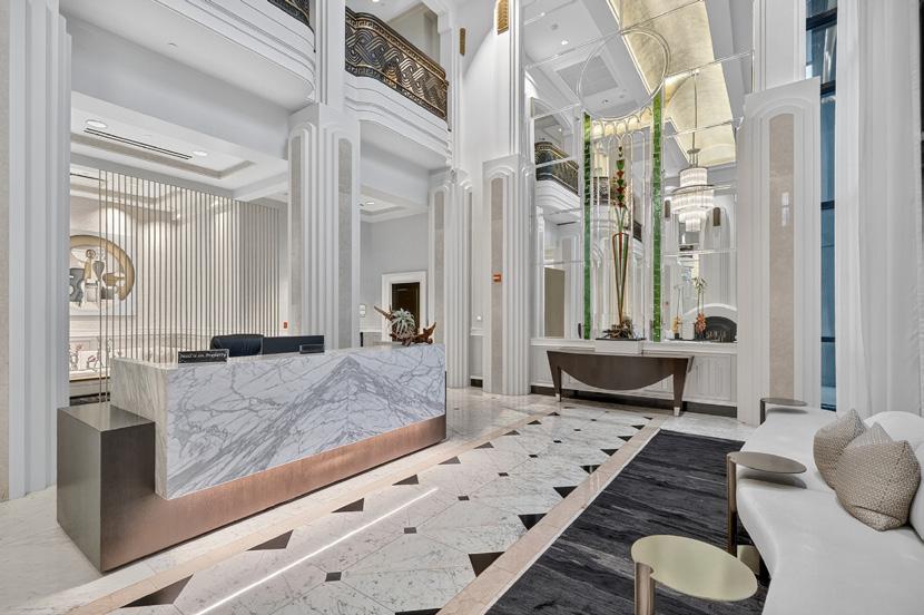 Life at Park Avenue is defined by its architecture and service. Stained glass, brass accents and carved staircases reflect the building's Art Deco-inspired design, while Park Avenue's amenities rival a private club: a heated saltwater pool with hidden elevator access, a fitness center with sauna, a climate-controlled wine room with assigned bins, two guest suites for visitors, an elegant event room with catering kitchen, EV-charging stations, a pet walk and 24/7 monitored security. The concierge and valet team ensure daily life is discreet and effortless.