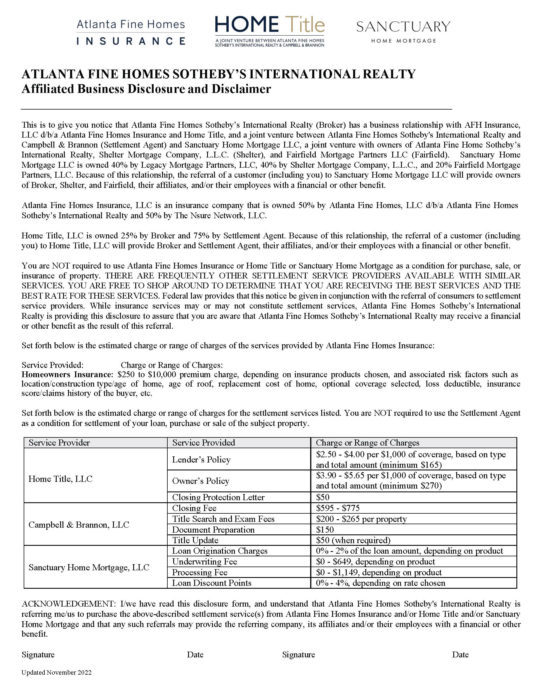 AFH Insurance, LLC is a full-service, independent agency and preferred service provider of Atlanta Fine Homes Sotheby’s International Realty, representing a carefully selected group of national and regional insurance companies. Our independence allows us the flexibility to shop and compare a wide variety of carriers.
