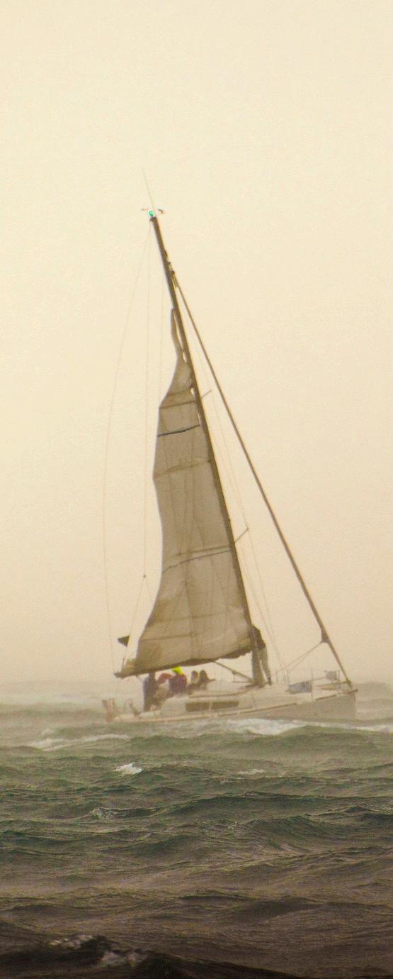 It is a lot easier to prepare ahead and take the sails down before things get too rough.