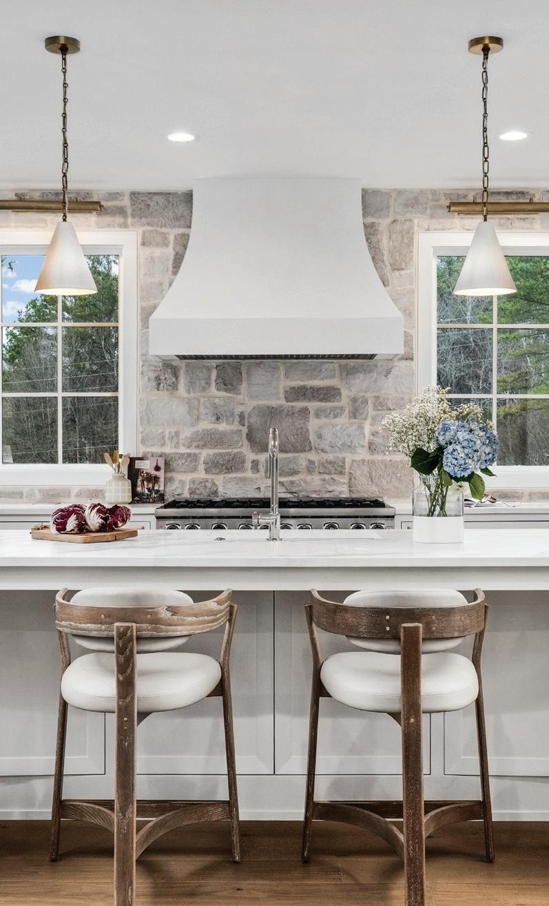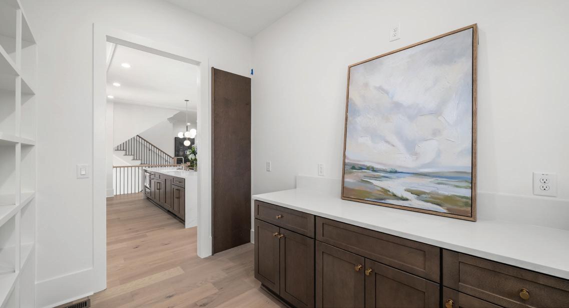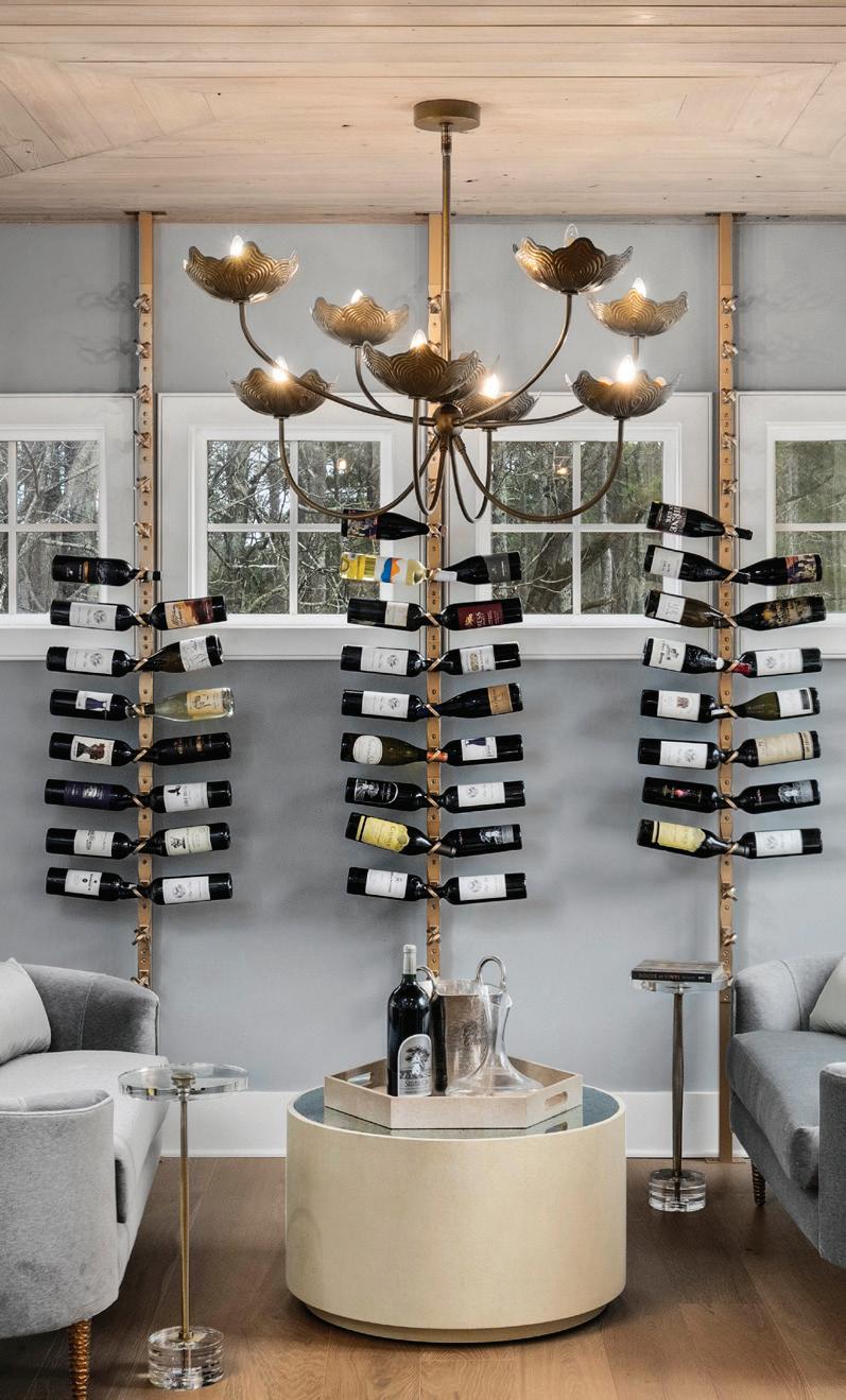 Inside, the home unfolds with a balance of elegance and warmth. The custom kitchen serves as the heart of the home, designed with both beauty and function in mind. A tumbled stone backsplash adds organic texture and old-world charm, grounding the space while complementing the refined cabinetry and finishes. Just off the kitchen, a dedicated wine room was created to reflect the clientsā passion for entertaining and their love of wine. Cozy seating and an intimate atmosphere make it a perfect space for gathering, tasting, and unwinding.