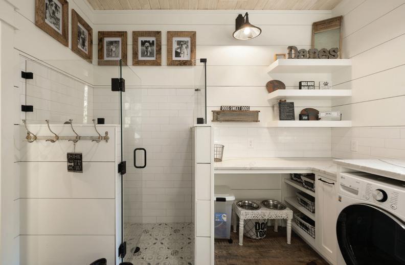 Purpose-built grooming areas integrated into mudrooms or garages with elevated finishes.