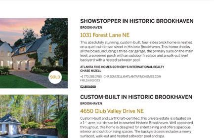 Atlanta Fine Homes Sotheby’s International Realty hand selects premier print publications and digital platforms to advertise the homes we represent. From daily blog and social media posts to targeted print publications that focus on real estate, lifestyle, art, regional events and philanthropic missions, we ensure your home receives enhanced exposure, translating to more buyer inquiries, showings and activity. Our local media partners include the Atlanta Business Chronicle, Atlanta Intown, the Buckhead, Brookhaven, Dunwoody and Sandy Springs Reporter Papers, North Fulton’s Appen newspapers, Marietta Daily Journal, Cherokee Ledger and more.