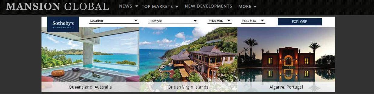 The exposure and worldwide reach of our listings is a crucial piece of what sets us apart from the rest of the industry. Our global property marketing partners include the most authoritative news, lifestyle and financial voices, as well as real estate-centric websites. Once a home is showcased on sothebysrealty.com, it is syndicated to more than 30 international websites that are leaders in their categories and markets, and will also be marketed on more than 100 local Sotheby's International Realty websites.
