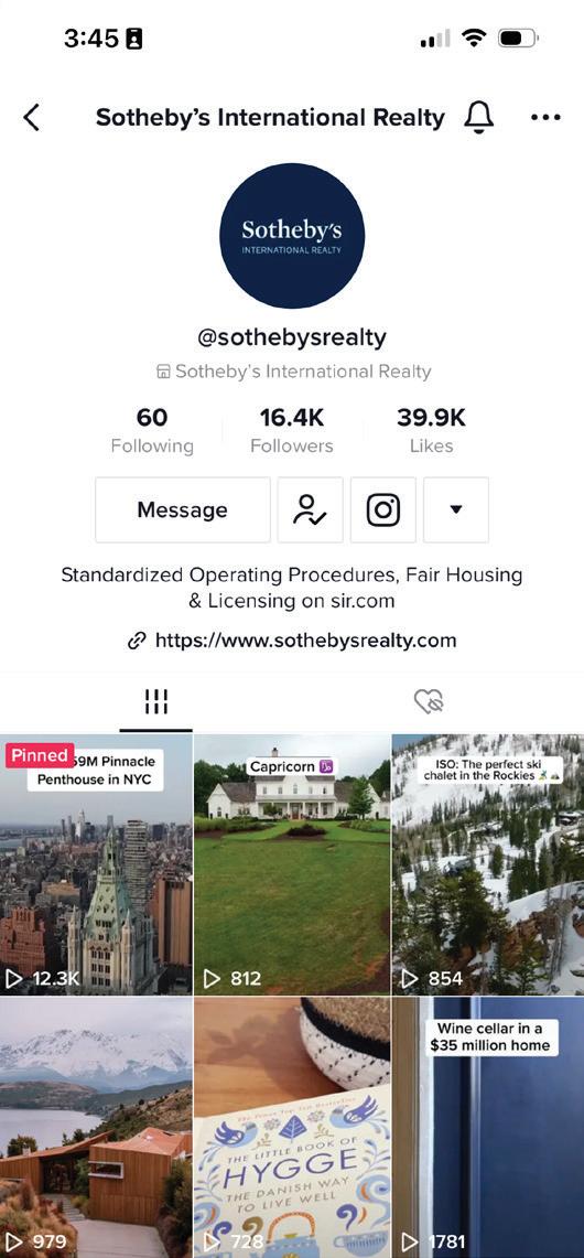 Sotheby's International Realty has a growing number of more than 1M followers worldwide viewing content on Instagram, YouTube, Facebook, TikTok, Pinterest, LinkedIn, Twitter, WeChat and our popular RESIDE® Blog. Together with Sotheby's International Realty, we craft and share exclusive social media content for people passionate about fine living and leverage targeted social media marketing to ensure your property reaches the web’s most sophisticated buyers.
