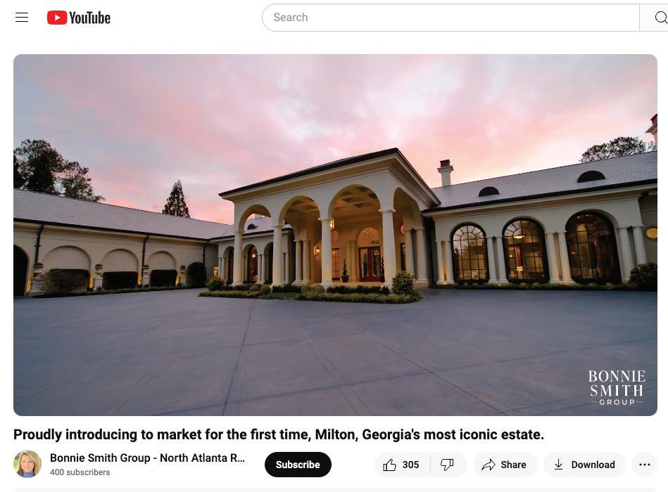 Locally, your home will be showcased across Atlanta Fine Homes Sotheby’s International Realty’s social media channels. In addition, the Bonnie Smith Group invests in a dedicated social media company to create posts, reels and videos that spotlight listings across all platforms.