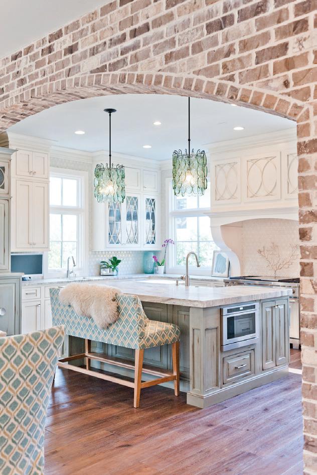Architectural details seen throughout the home are echoed in designer Mary Kathryn Timoney’s personal kitchen, as seen in Ma hew Quinn’s Quintessential Kitchens and Collaborations: Volume Three