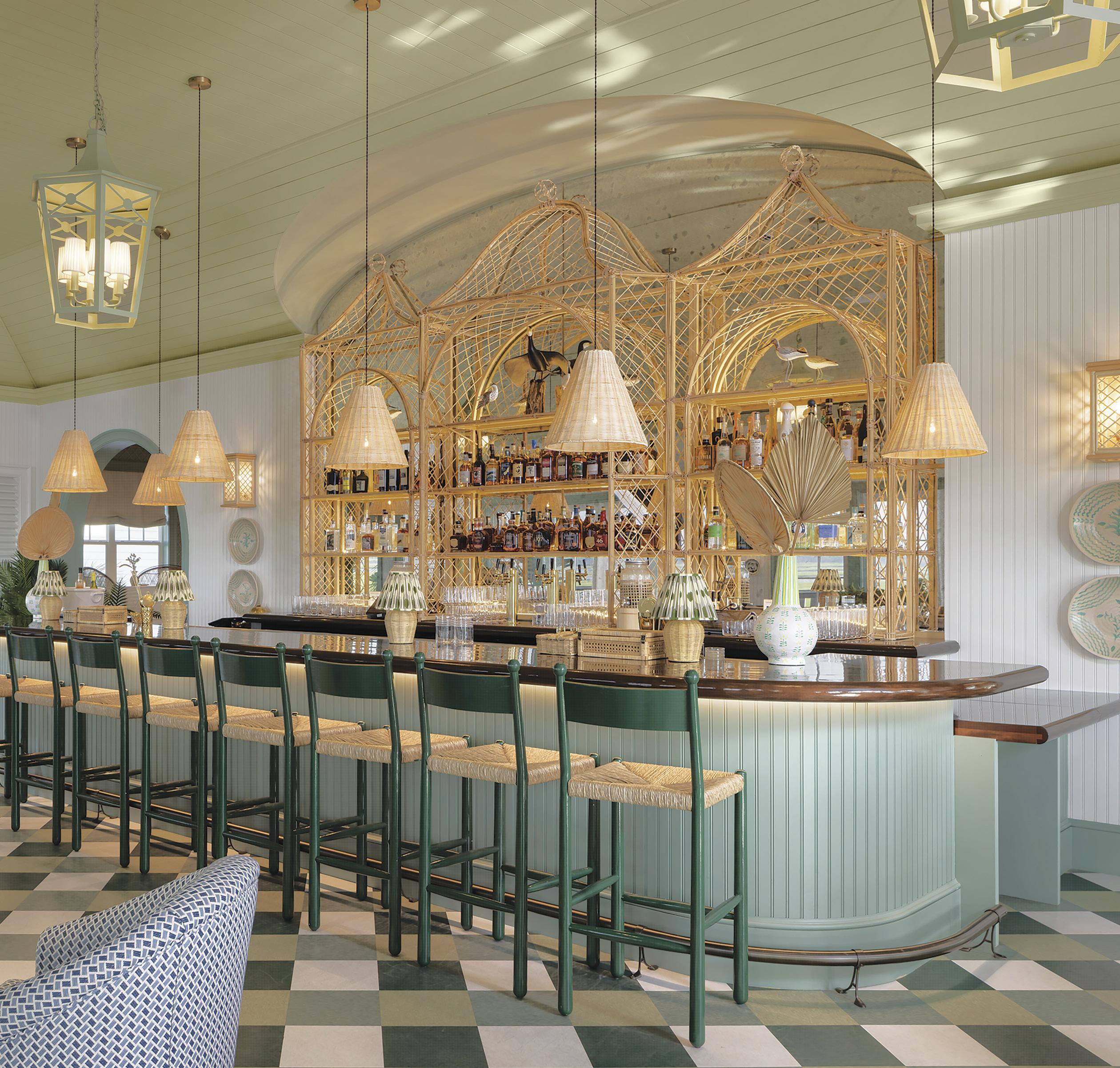 positioned as a back door leading to aquatic amenities and gardens (keep an eye out for nods to Augusta National).