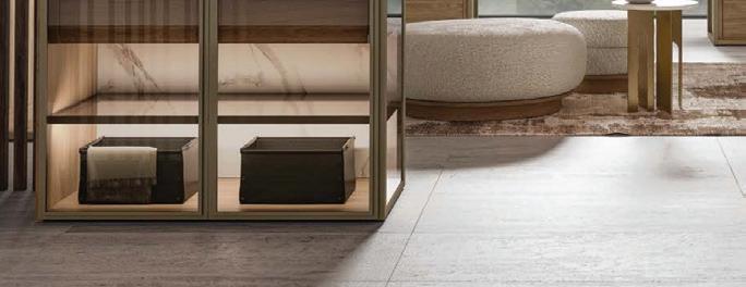 HOW YOU KNOW THEIR WORK... A floor-to-ceiling window floods a modern space with natural light, and glass display cases framing the dressing room provide privacy while showcasing international artifacts. Visit ra nedesign.com