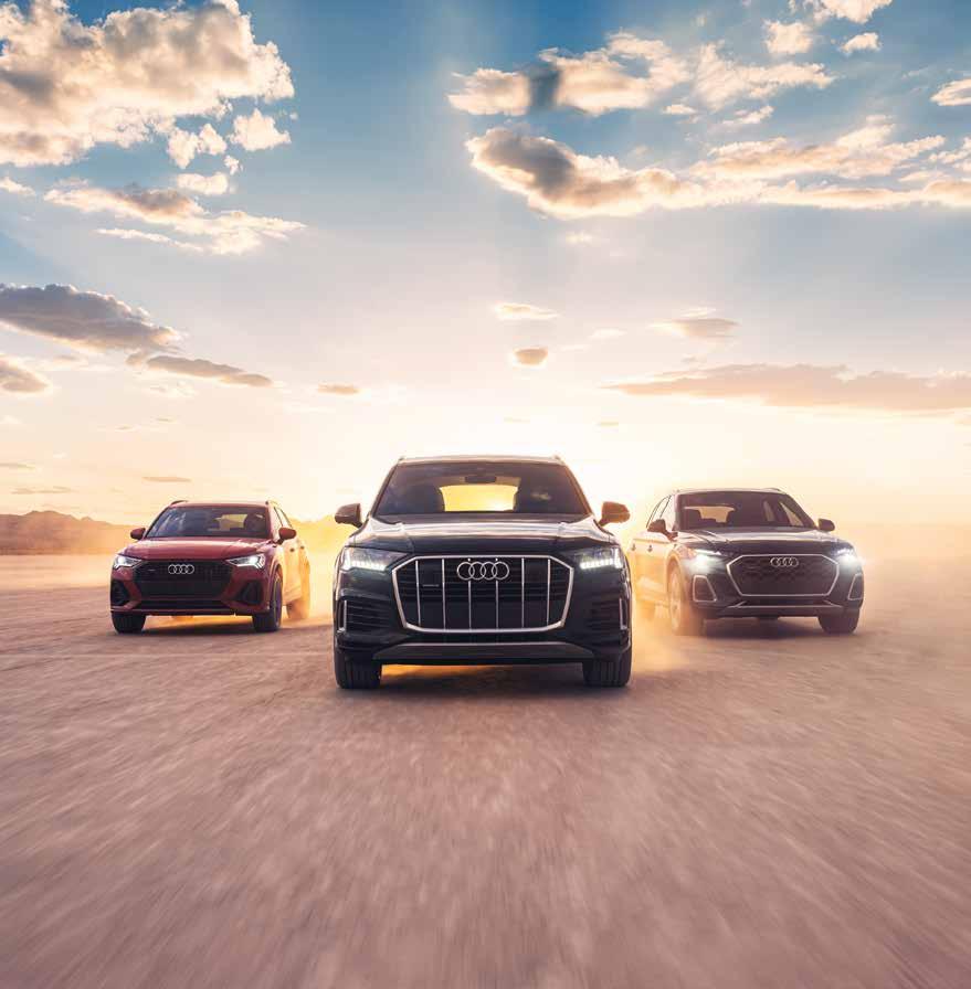 Experience the versatility, driving dynamics, and elevated comfort of an Audi SUV. Each model is designed with luxury in mind and engineered with innovative, progressive technology at its core—including legendary, quattro® all-wheel drive and options of turbocharged, hybrid or electric powertrains.