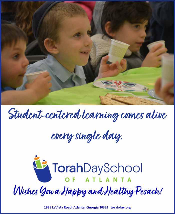 ATLANTA JEWISH TIMES MARCH 31, 2023 | 5 Bagels Breads Appetizers Salads Deli catering 1255 Johnson ferry road, suite 37, marietta, ga 30068 770-509-9505 BAGELICIOUS CONTRIBUTORS THIS ISSUE SIMONE WILKER SUSANNE KATZ KARLICK ADVERTISING Senior Account Manager & Team Supervisor MICHAL BONELL michal@atljewishtimes.com Account Manager ILYSSA KLEIN ilyssa@atljewishtimes.com Account Manager ELIZABETH LANGFELDER elizabeth@atljewishtimes.com CREATIVE & DESIGN Creative Director LILLI JENNISON lilli@atljewishtimes.com COMMUNITY ENGAGEMENT Events and Public Relations Coordinator KATIE GAFFIN katie@atljewishtimes.com Atlanta Jewish Connector Coordinator DIANA COLE Diana@atljewishtimes.com GENERAL OFFICE Administrative Assistant REBECCA LABANCA info@atljewishtimes.com 404-883-2130 The Atlanta Jewish Times is printed in Georgia and is an equal opportunity employer. The opinions expressed in the Atlanta Jewish Times do not necessarily reflect those of the newspaper. Periodicals postage paid at Atlanta, Ga. POSTMASTER send address changes to Atlanta Jewish Times 270 Carpenter Drive Suite 320, Atlanta Ga 30328. Established 1925 as The Southern Israelite www.atlantajewishtimes.com ATLANTA JEWISH TIMES (ISSN# 0892-3345 IS PUBLISHED BY SOUTHERN ISRAELITE, LLC © 2023 ATLANTA JEWISH TIMES Printed by Walton Press Inc. MEMBER Conexx: America Israel Business Connector Atlanta Press Association American Jewish Press Association National Newspaper Asspciation Sandy Springs/Perimeter Chamber of Commerce Please send all photos, stories and editorial content to: submissions@atljewishtimes.com CONTENTS NEWS .............................................. 6 SPORTS 28 ISRAEL ......................................... 32 BUSINESS .................................... 36 OPINION 38 PASSOVER .................................. 44 ARTS & CULTURE ....................... 86 CHAI STYLE 95 CALENDAR .................................. 98 KEEPING IT KOSHER ............... 102 BRAIN FOOD 103 OBITUARIES 104 CLOSING THOUGHTS ............. 108 MARKETPLACE ........................ 110
