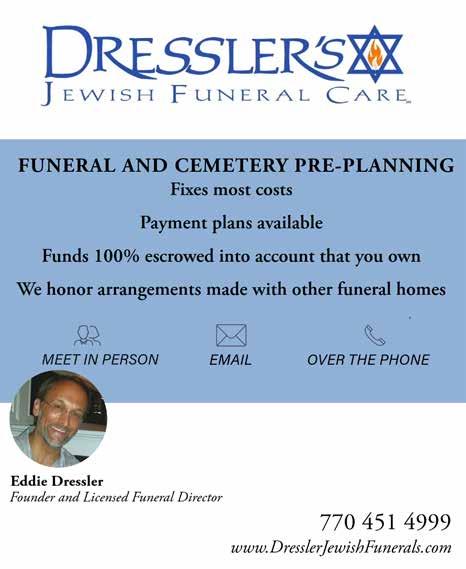 Arrangements by Dressler’s Jewish Funeral Care, 770-451-4999.