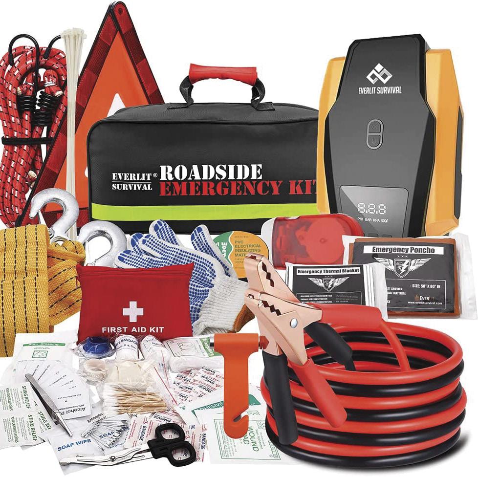 Be prepared for anything with Everlit’s Survival Car Emergency Kit, which includes repair cable ties, bungee cords, electrical tape, a space blanket, a tire inflator, a first aid kit and more. Available at amazon.com for $64.95.