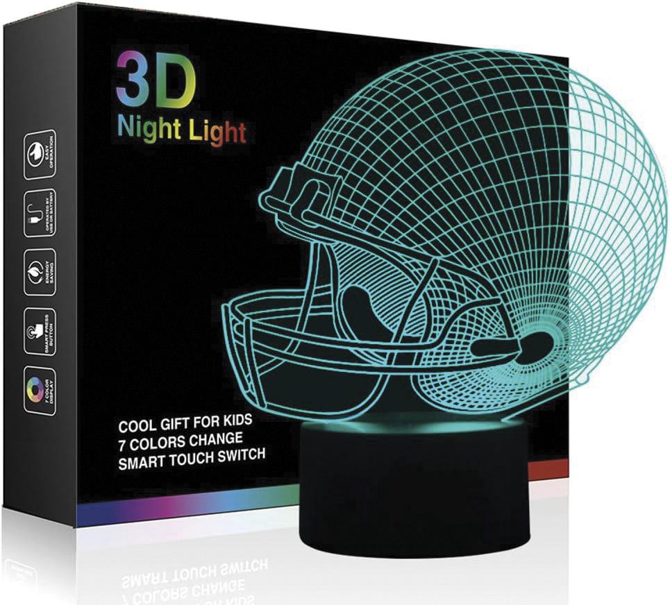 Bring the love of football to your child’s bedroom with Timok’s Football Helmet Night Light. This 3D lamp shade will showcase her favorite sport and keep her safe from the dark. When the light is lit, the optical visual illusion makes the helmet look 3D, and the lamp cycles through seven colors for a pretty spectacle. Available at amazon.com for $20.99.