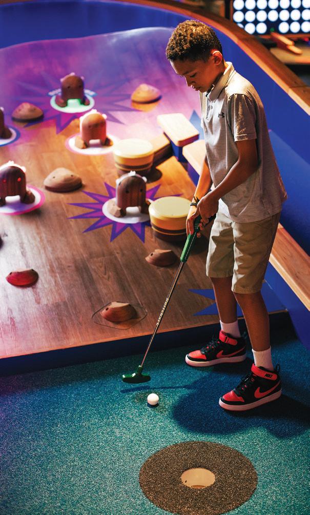 n Lakepoint Station has both a special outdoor course and a blacklight indoor course for mini golf competitions. Along with mini golf, enjoy arcade games, bowling or rollerball competitions, mining for treasure, rock climbing and playing laser tag. 77 Old Allatoona Rd., Cartersville. $22-$55; single attractions, $7-$14. lakepointstation.com
