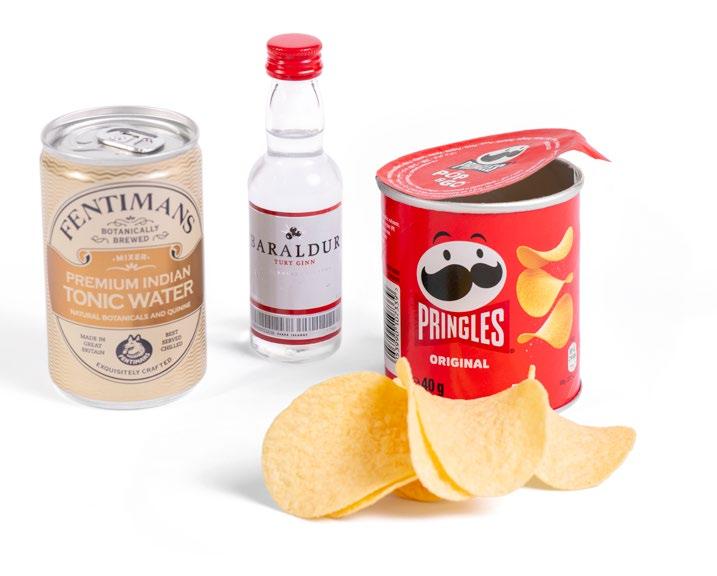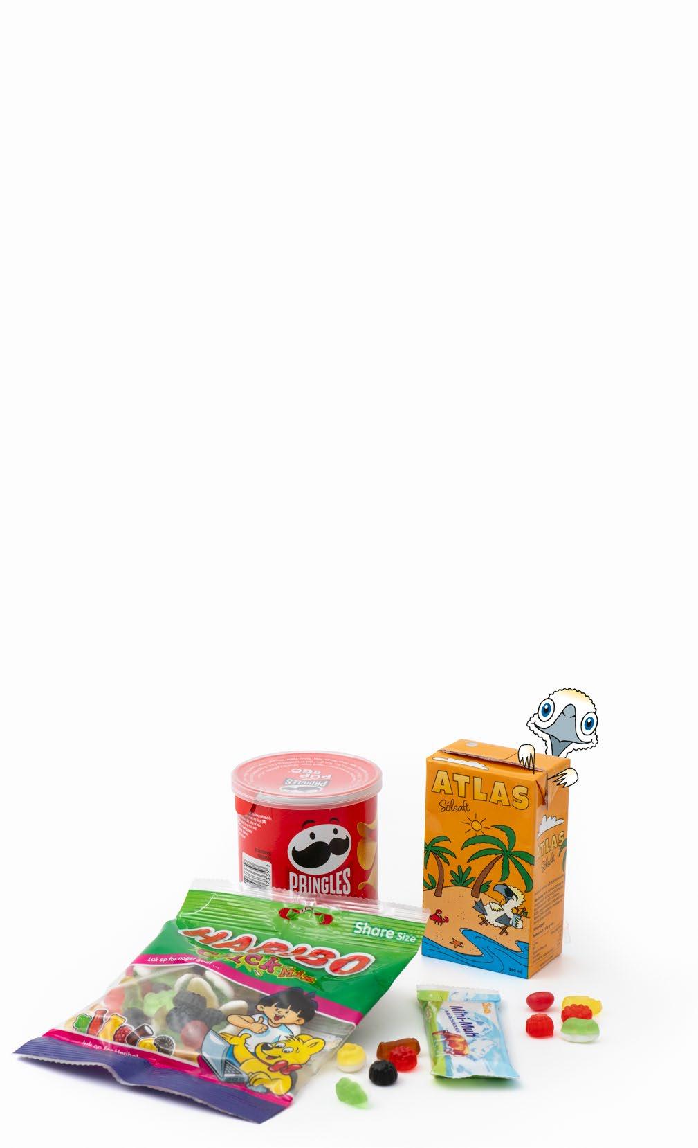 1 Djús /Juice 1 Haribo Click Mix 1 Pringles /Crisps 1 Mini-Muh /Chocolate