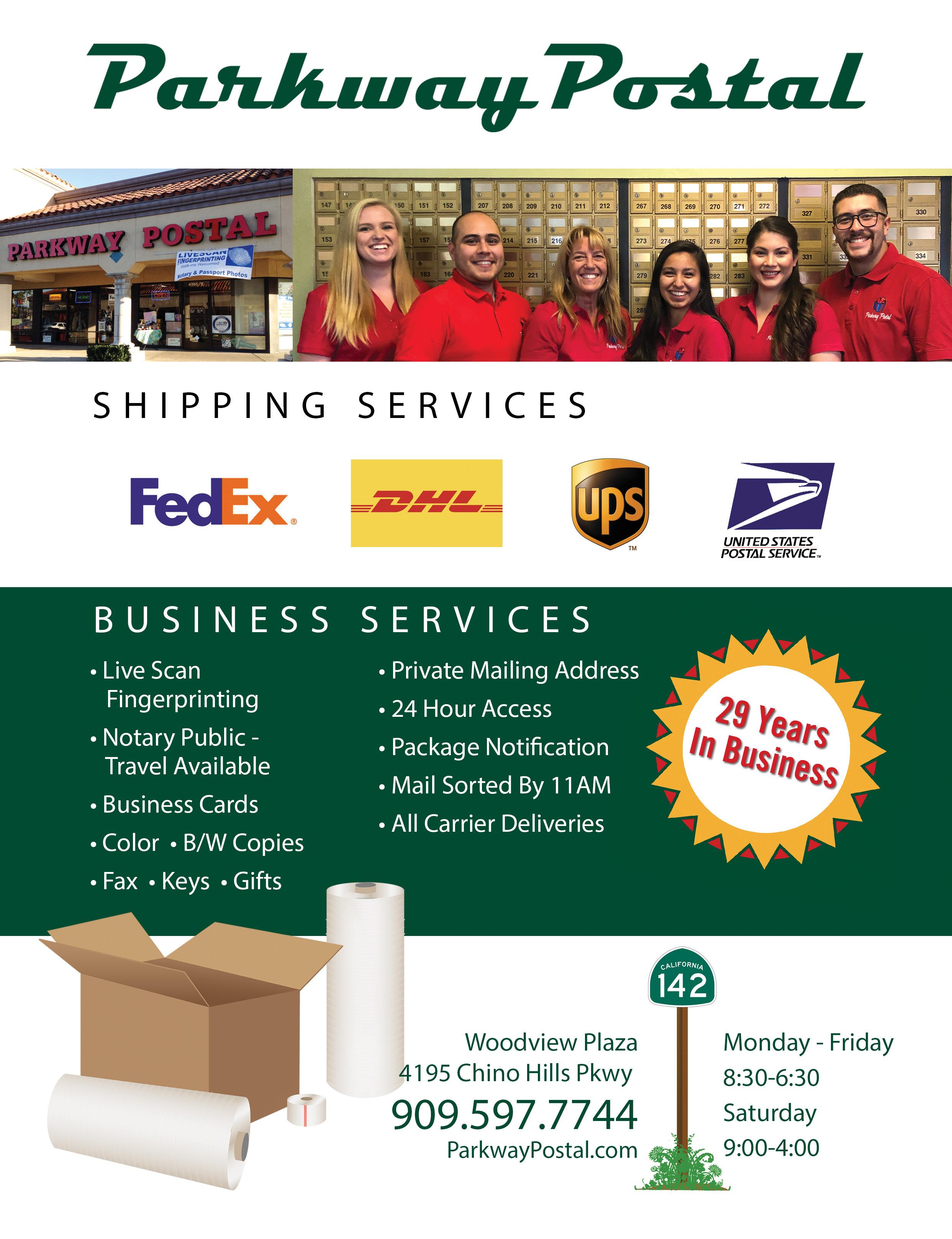 Parkway Postal-Chino Hills .................................................................... Back Cover www.parkwaypostal.com