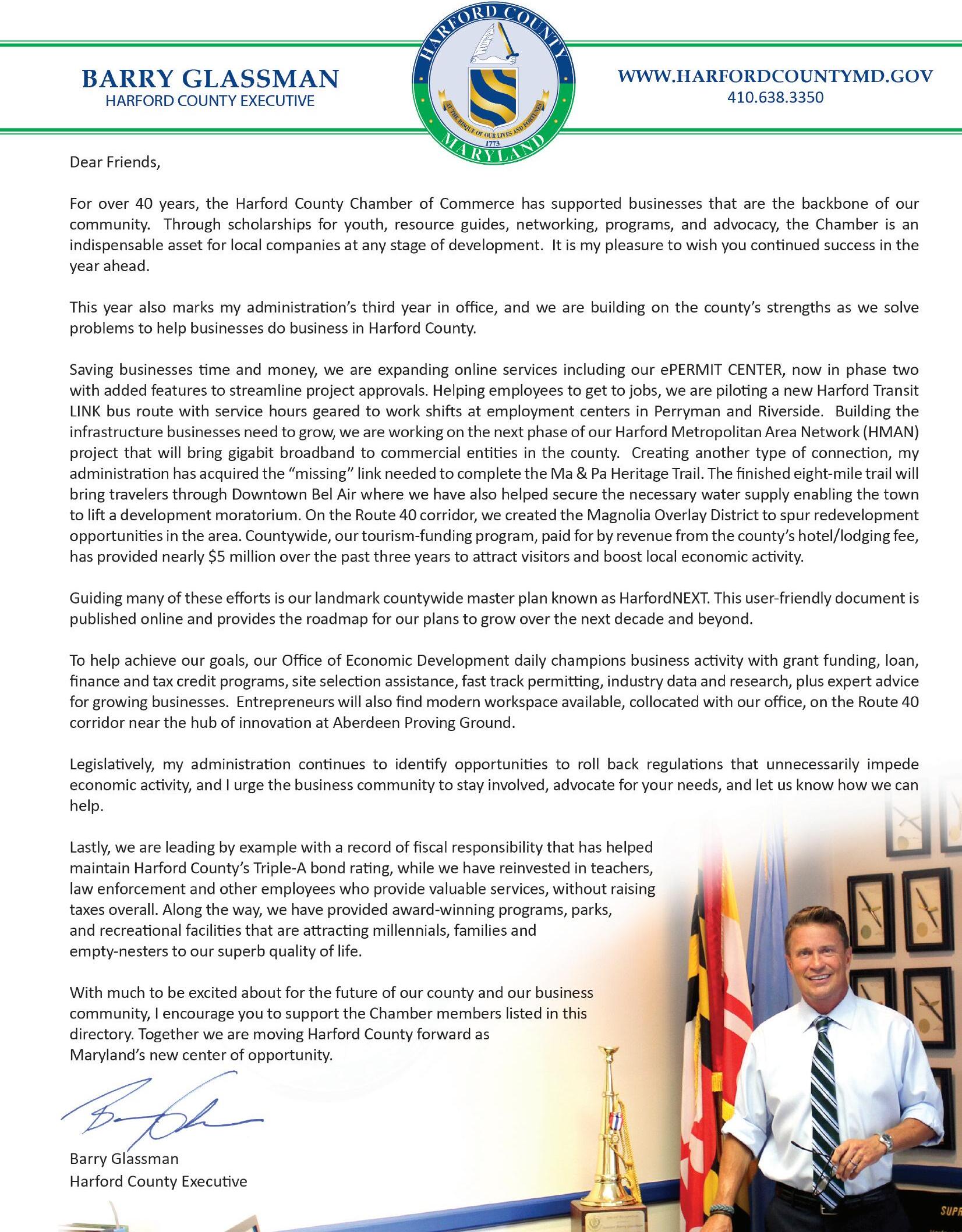 The Har ford County Chamber of Commerce is now well into its four th decade. The question of who we are as an organization has changed significantly dur ing that time – more, in fact, than it has on paper. As our Chamber enters FY 2018, we are inclined to view our Chamber not only in ter ms of our mission statement, our vision, and our goals, but as the cumulative and dynamic voice of you, our members.